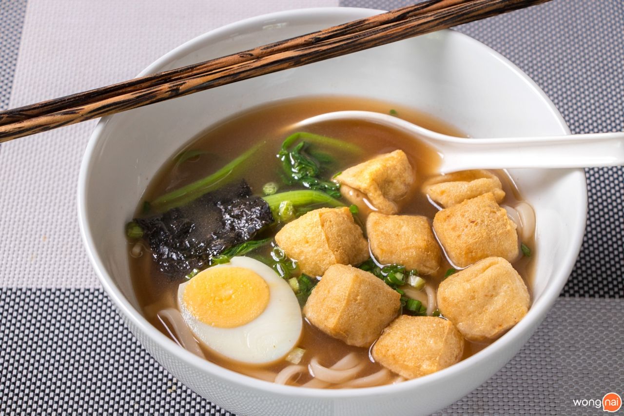 มาถึงอาหารจานหลัก มีให้เลือกเยอะเลยนะ วันนี้ผมลองสั่ง ราเมนหน้าเต้าหู้ทอด (55 บาท) ราเมนเส้นอวบนอนแช่ตัวแบบชุ่มๆ อยู่ในน้ำซุปโชยุรสนุ่มสีน้ำตาลอ่อน เสิร์ฟให้ทานพร้อม ไข่ต้ม, ผัก, สาหร่าย และเต้าหู้ทอดแบบกรอบนอกนุ่มใน