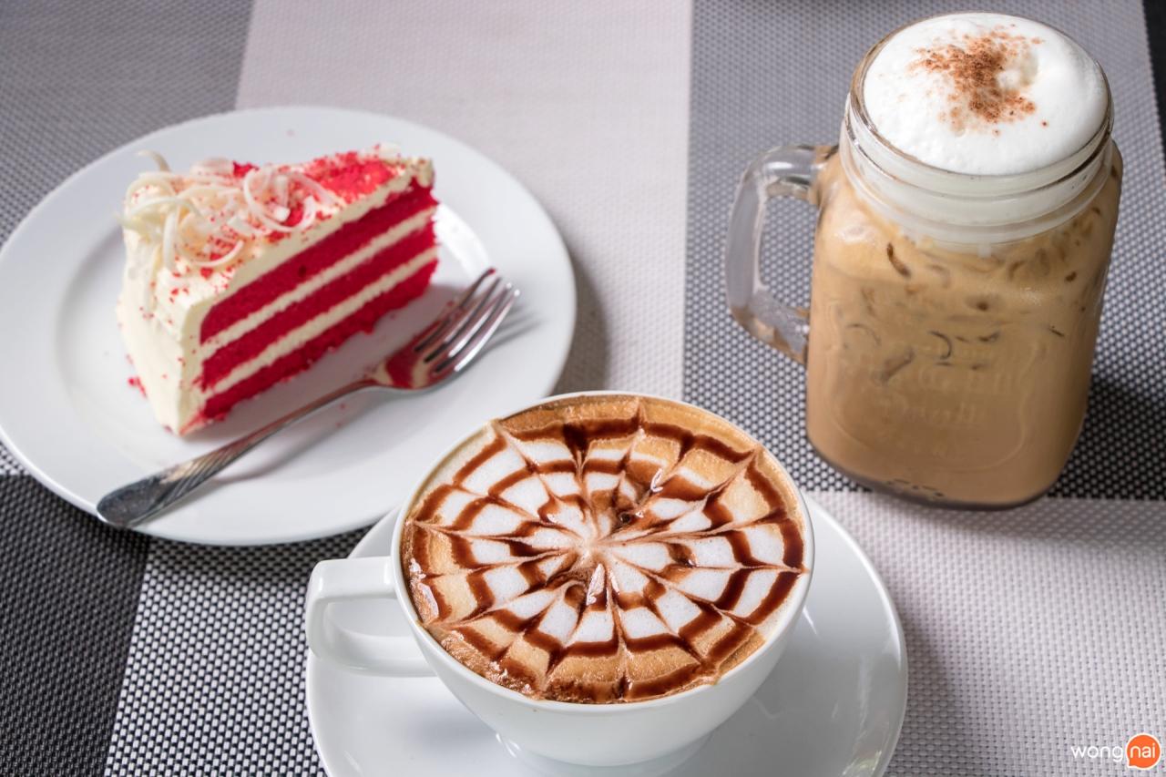 เครื่องดื่มเอง ที่นี่ก็มีหลายตัวที่น่าสนใจเลยแหละ ไม่ว่าจะเป็น “กาแฟ” ที่ทางในห้องอาหารก็มีให้เลือกแบบครบเลยทั้งร้อน เย็น และปั่น ด้วยรสชาติที่เข้มข้น แต่เสิร์ฟมาให้ดื่มกันในราคาเบาๆ ที่ 55-65 บาทเท่านั้นเอง