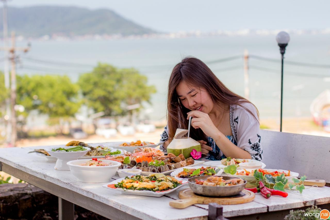 นั่งกินข้าวไป ชมวิวทะเลไป มองดูแสงไฟที่ทอดยาวสุดลูกหูลูกตาของสะพานติณสูลานนท์ โรแมนติกสุดๆ ไปเลยค่ะ