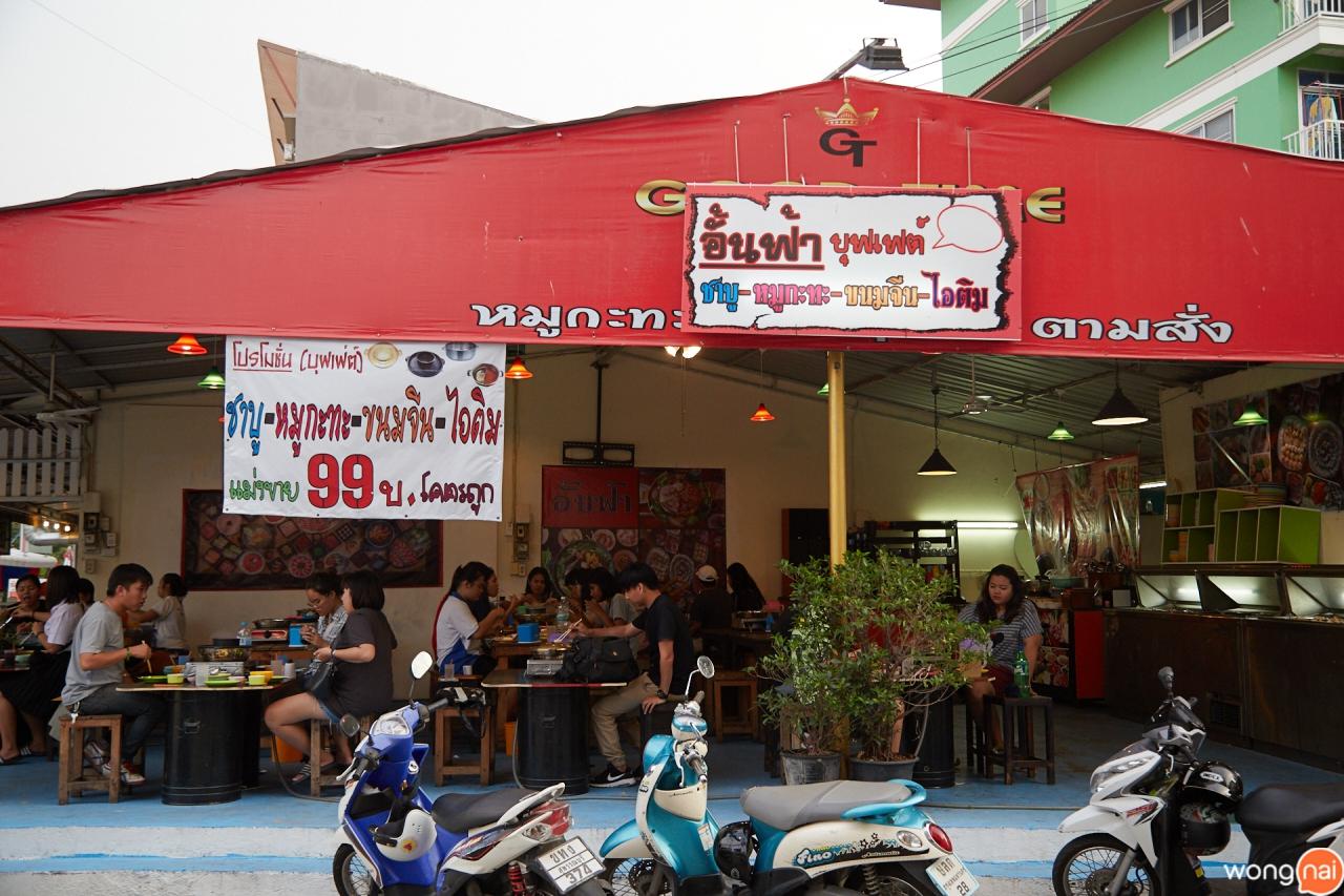 วันนี้เบเบ้ และทีมงาน Wongnai ชลบุรี พามาบุกถึงถิ่นเด็ก ม.บูรพา บางแสน เกิดอยากรู้ขึ้นมาว่าช่วงปลายเดือนแบบนี้น้องๆ เอาชีวิตรอดยังไง จนเดินมาเจอกับร้าน "อั้นฟ้า บุฟเฟ่ต์ ชาบูหมูกระทะ ขนมจีน ไอศกรีม แม่งขาย 99 บาท โคตรถูก" ใช่ค่ะ นี่คือชื่อร้านแบบเต็มๆ
