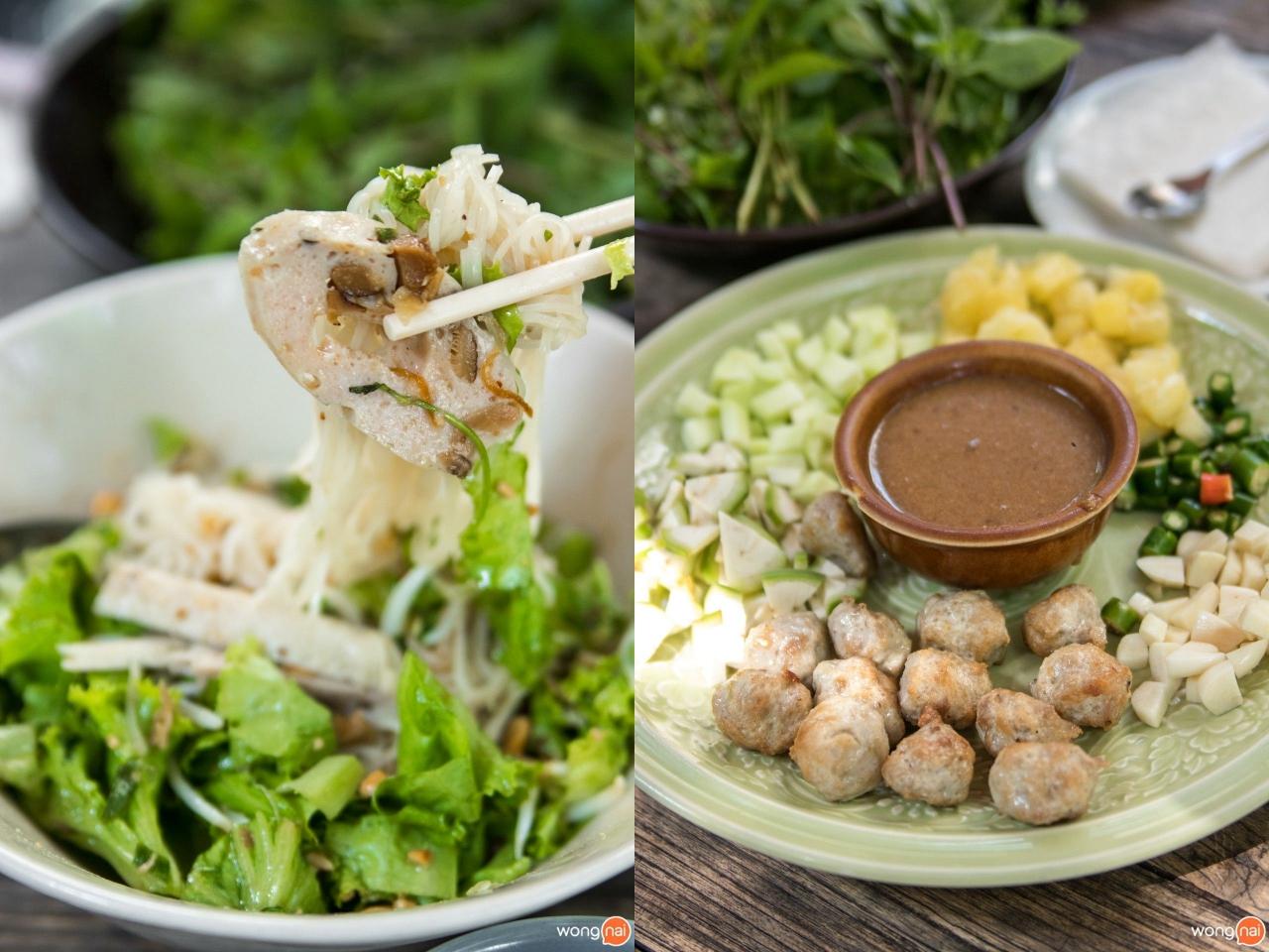 และขาดไม่ได้กับเมนู เฝอ (ราคา 60 บาท) เมนูนี้เป็นอีกเมนูที่ใครมาก็ต้องสั่ง เมนูเฝอแห้งที่หากินได้ยาก จะใช้เส้นก๋วยเตี๋ยวลวกนุ่มๆ คลุกเคล้ามาคู่กับ หอมแดงเจียว ถั่ว และหมูยอสูตรของทางร้าน คู่กับผักสลัดสดใหม่ สูตรที่นี่จะเสิร์ฟมากับ กะปิ สำหรับคนที่อยากได้รสชาติและกลิ่นที่เข้มข้นกว่าเดิม รับรองเลยว่าเมนูนี้ไม่ผิดหวังอย่างแน่นอน