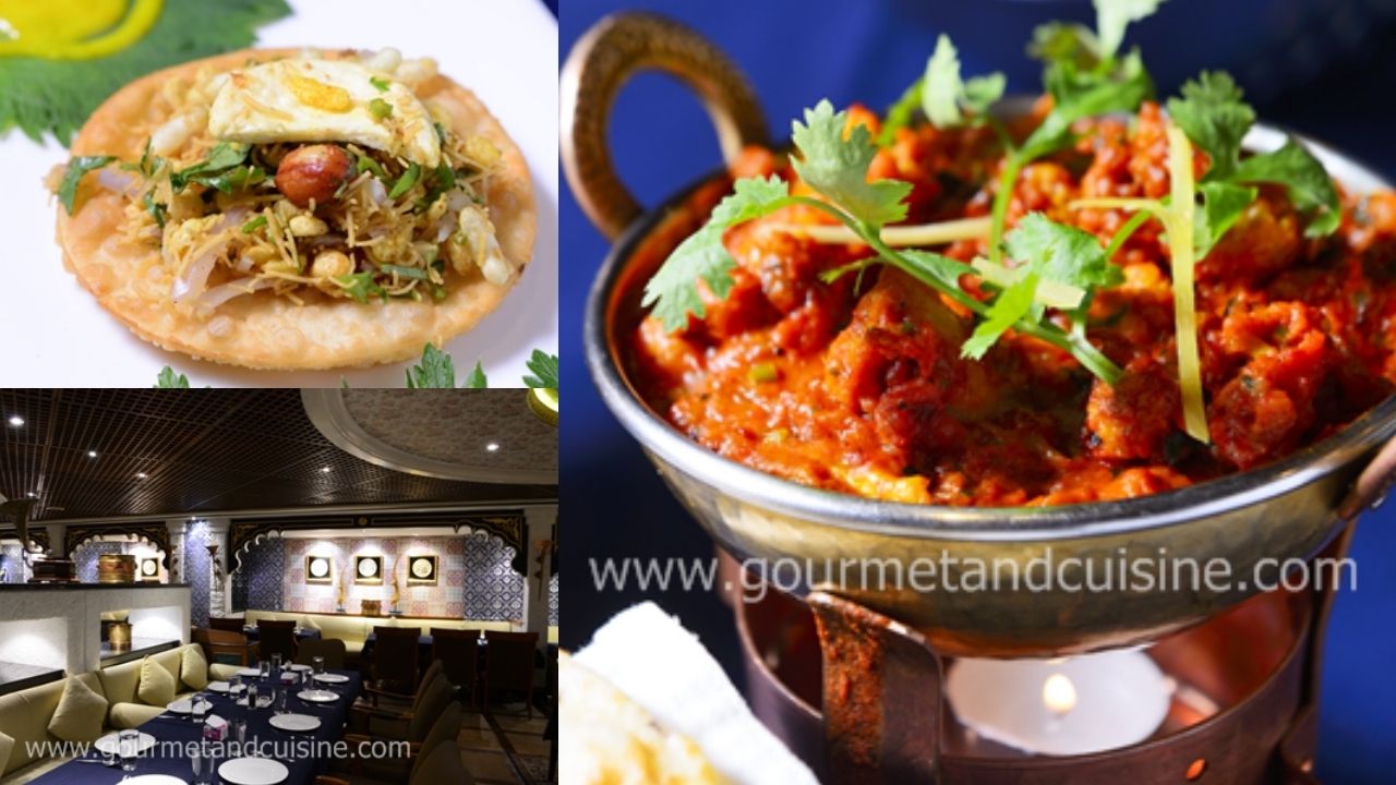 เริ่มต้นเรียกน้ำย่อยกับ Papadum ข้าวเกรียบอินเดียเสิร์ฟพร้อมชัตนีย์ 4 รสชาติ ได้แก่ ซาวน์ครีม บีตรูต มะม่วง และสับปะรด Bhelpuri ของว่างทำจากข้าวพอง ผักรวม และซอสมะขามรสเปรี้ยว