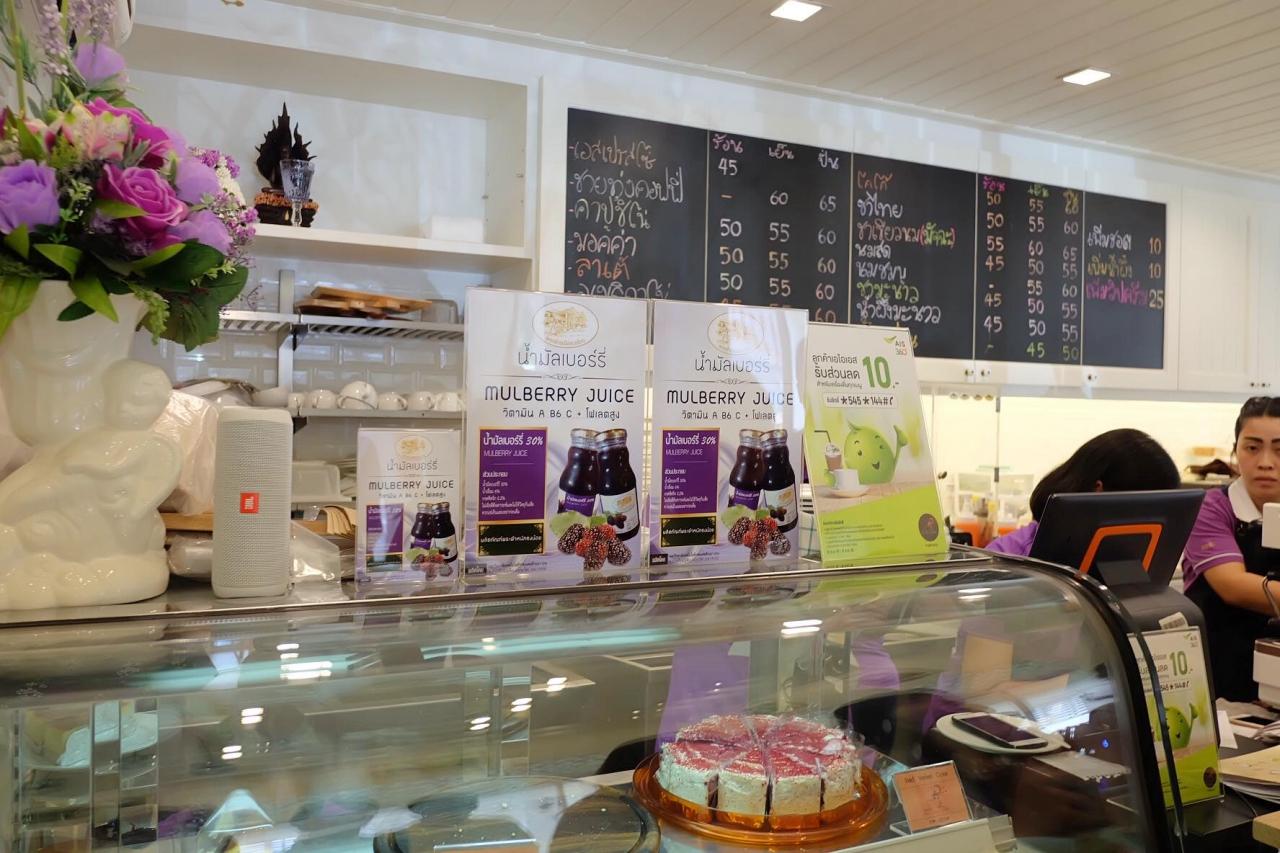 สำหรับเครื่องดื่มส่วนใหญ่จะเป็นเมนูกาแฟต่างๆ เมนูโกโก้ร้อน และน้ำสมุนไพร ที่นำผลผลิตของไทยมาทำ และยังมีขนม เบเกอรี่ต่างๆ เช่น ขนมพาย เค้ก เป็นต้น