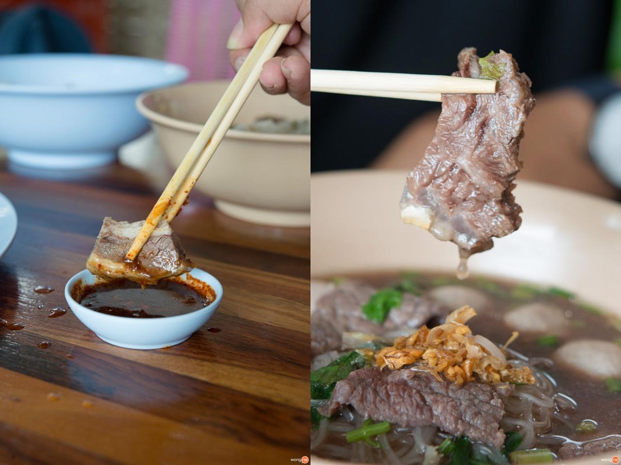 จากเมื่อก่อนมีเพียงแค่ก๋วยเตี๋ยวน้ำใส ก็ได้ปรับเปลี่ยนเอาใจลูกค้าเพิ่มก๋วยเตี๋ยวน้ำตกเข้าไปด้วยค่ะ น้ำซุปของทางร้านจะมีกระดูกวัว เนื้อเปื่อยหลายสิบกิโลต่อวัน เคี่ยวให้ความหวานของเนื้อและน้ำกระดูกออกมาผสมกับน้ำที่เราปรุงเครื่องสูตรเฉพาะของร้าน และยังเพิ่มเมนูลวกจิ้มสำหรับสายเนื้อให้ได้ฟินแบบเต็มอิ่ม ที่ร้านเตรียมวัตถุดิบสดใหม่ทุกเช้า ใช้เนื้อเปื่อยที่คัดพิเศษ เป็นเนื้อที่เหมาะสมกับการทำเนื้อเปื่อยที่สุด จะมีความหอมและนุ่ม