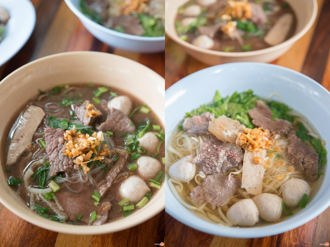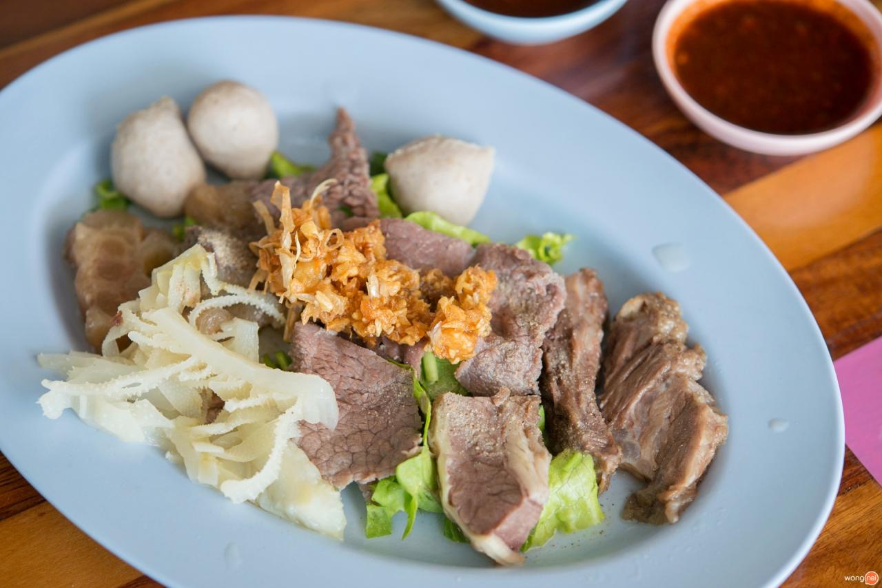 ก๋วยเตี๋ยวเนื้อน้ำตก (50 บาท), ก๋วยเตี๋ยวเนื้อน้ำใส (50 บาท) น้ำซุปรสชาติกลมกล่อมหอมกลิ่นเนื้อฟุ้งไปทั้งร้าน ตัวเนื้อตุ๋นมาจนนุ่มและเอาใจสายเนื้อเน้น ๆ ด้วย ลวกรวม (60 บาท) จานเดียวครบ ทั้งลูกชิ้น, เนื้อเปื่อย, เนื้อสามชั้น และเอ็นแก้ว พร้อมน้ำจิ้มแจ่วแซ่บ ๆ