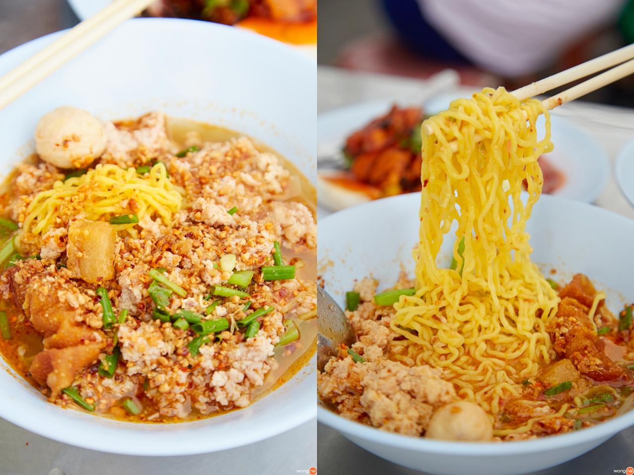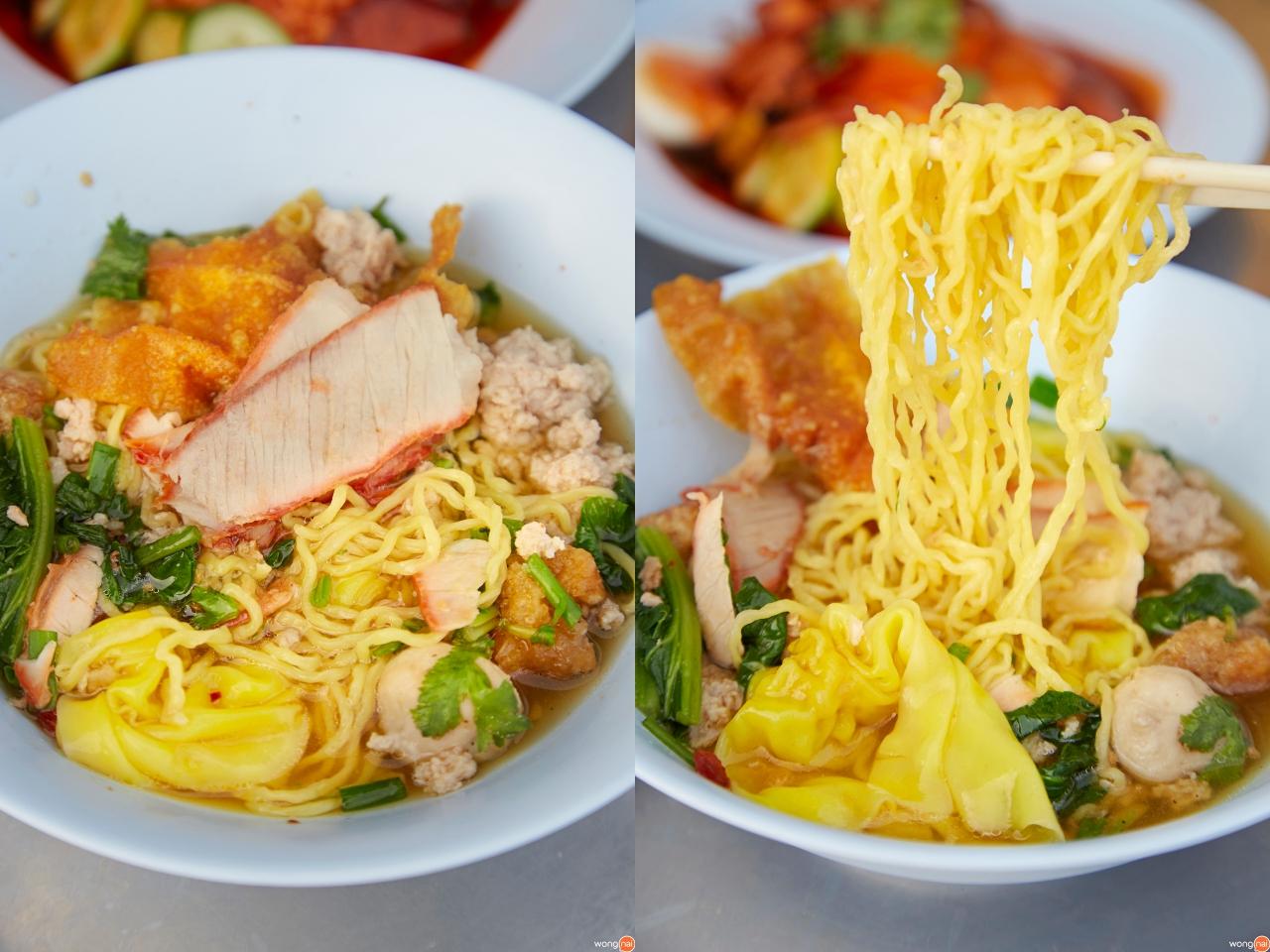 เส้นบะหมี่ของที่นี่เป็นเส้นที่ทำเอง รสชาติจะเหนียวนุ่มเป็นพิเศษ ส่วนเกี๊ยวปู และหมูแดงก็ทำเองเช่นกัน แผ่นเกี๊ยวบาง อัดแน่นไปด้วยเนื้อปูเน้น ๆ หมูแดงเต็มคำ