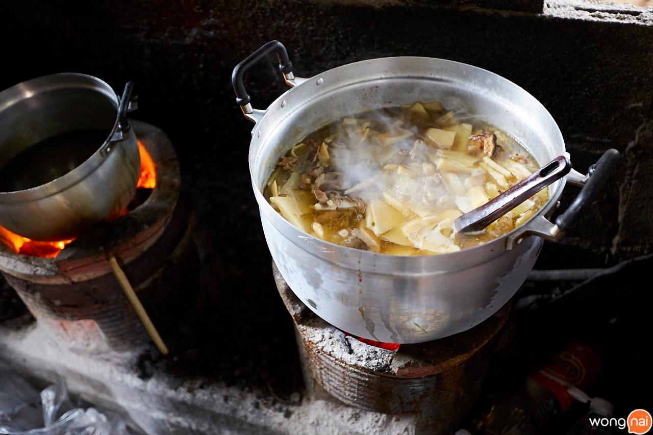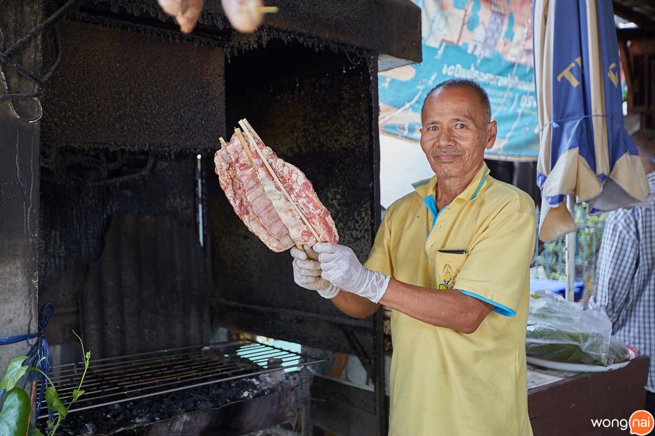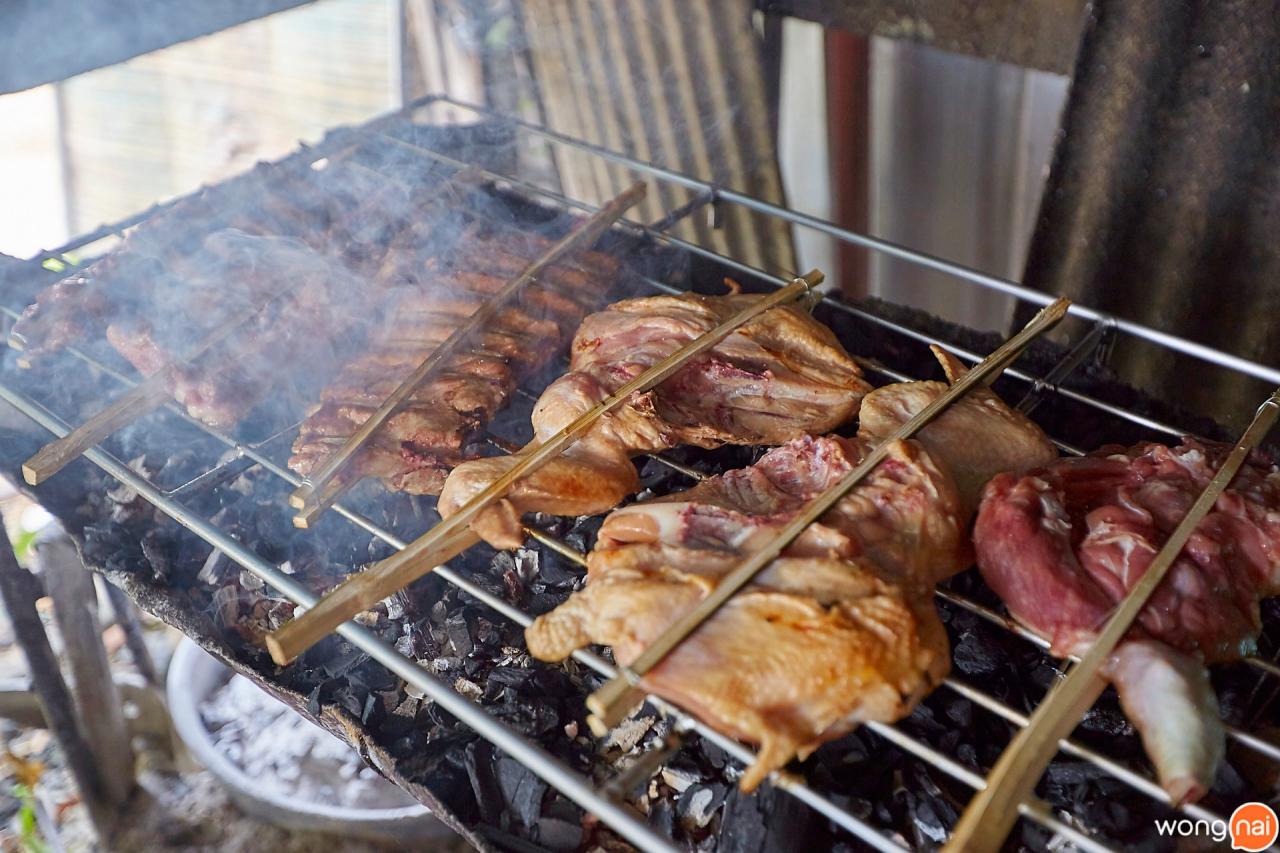 นั่งกินไปสักพักคุณตาก็เอาซี่โครงหมูมาลงเตาย่างแล้ว ยายแจ๋วบอกว่าจะย่างเวลา 11 โมงของทุกวันค่ะ เอาแบบใกล้ๆ ช่วงที่คนพักเที่ยงไม่มีมาย่างตากลมทิ้งไว้นะจ๊ะ