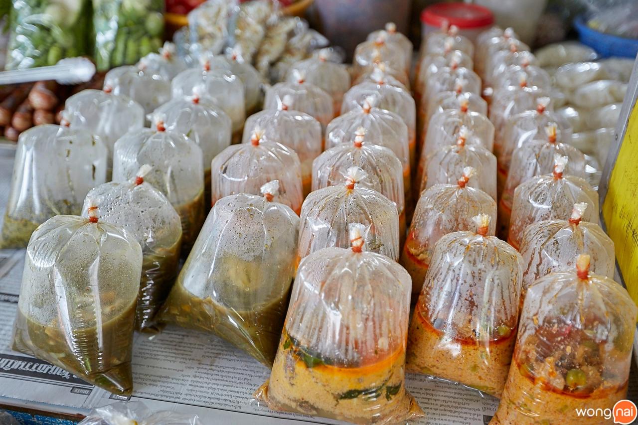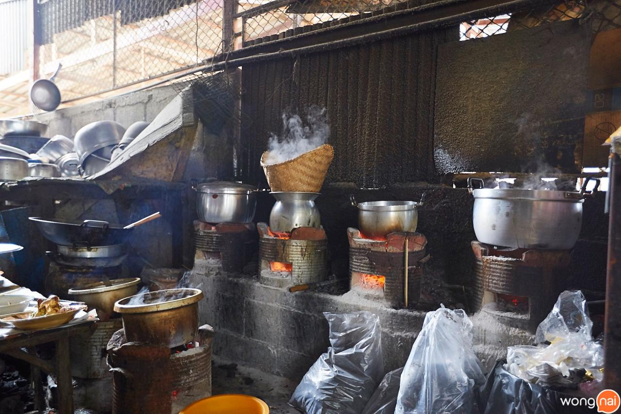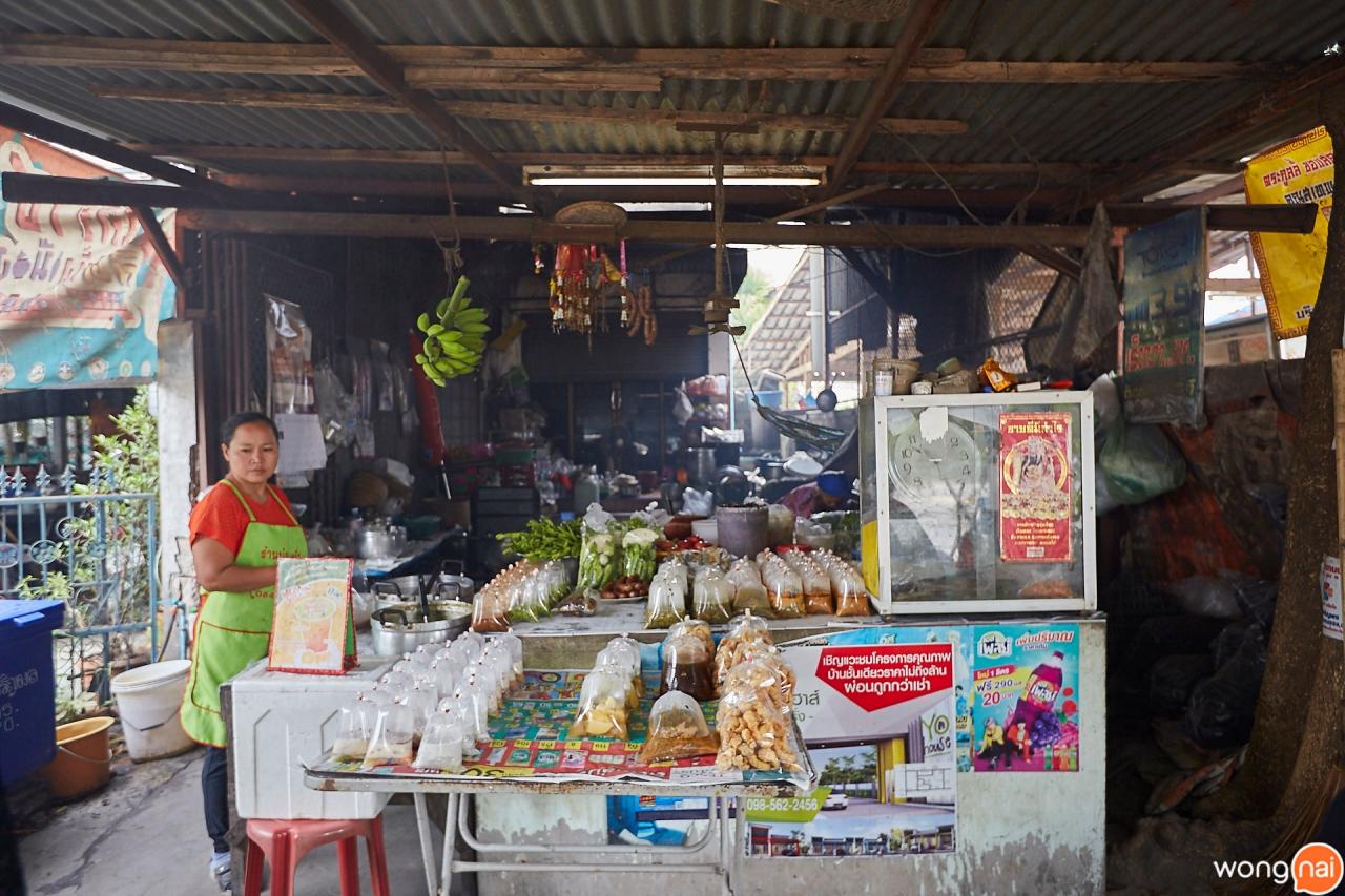 วันนี้เรามาถึงตั้งแต่ 10 โมงเช้าเลยค่ะ ยายแจ๋วแอนด์เดอะแก๊งยังทำกับข้าวกันอยู่ แต่ก็มีกับข้าวเป็นถุงที่วางเรียงรายอยู่หน้าร้าน ซึ่งกับข้าวทุกอย่าง ยันไส้กรอกที่ห้อยอยู่ยายแจ๋วทำเองหมดเลยค่ะ มีแค่อย่างเดียวที่ไม่ได้ทำเองคือ ปลาทู อันนี้ซื้อเขามา ส่วนการปรุงอาหารก็ใช้เตาถ่านทั้งหมด ไทยบ้านแท้ๆ เลย