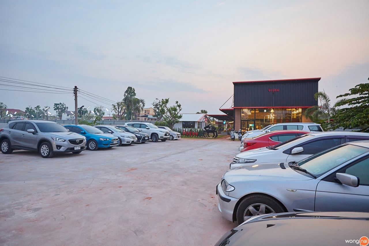 ขับจากปากซอยเข้าไปนิดเดียวก็ถึงแล้วค่ะ อันดับแรกร้านกว้างขวางมาก ที่จอดรถไม่ต้องห่วง สามารถจอดกันได้เป็น 30-40 คันกันเลย หน้าร้านจะมีหุ่นปูตัวใหญ่ยืนรอต้อนรับเราอยู่ เห็นมีสวนด้วย เลยขอเดินไปส่องตรงโซนสวนก่อน