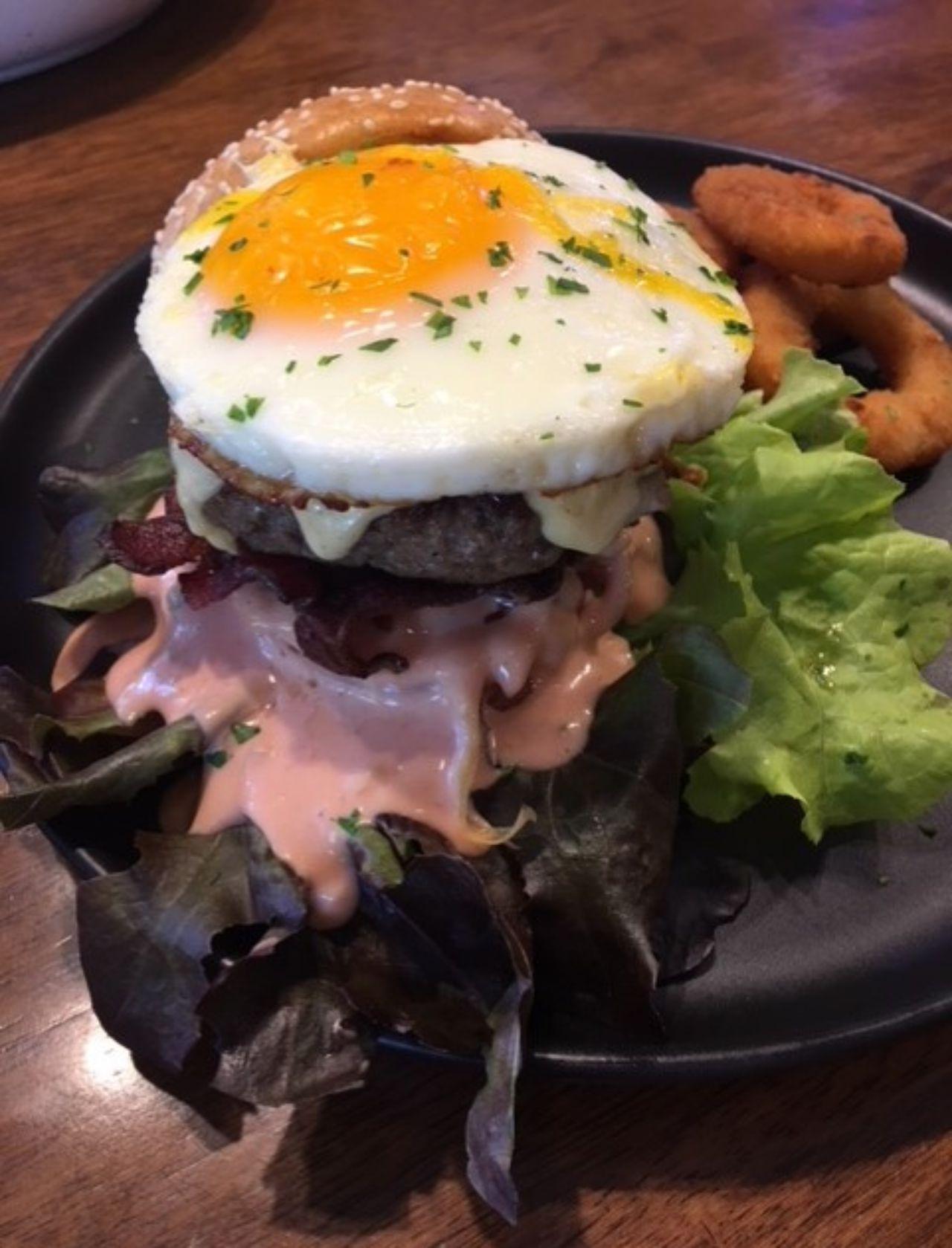 ความพิเศษของจานนี้อยู่ที่ ตัวเนื้อเบอร์เกอร์ที่หนานุ่ม มีส่วนผสมและปรุงด้วยสูตรเฉพาะของทางร้าน สลับชั้นด้วยซอสพร้อมหัวหอมผัดเนย pancetta กรอบ แล้วโป๊ะด้านบนด้วยไข่ลวก สุดยอดไปเลยจ้า