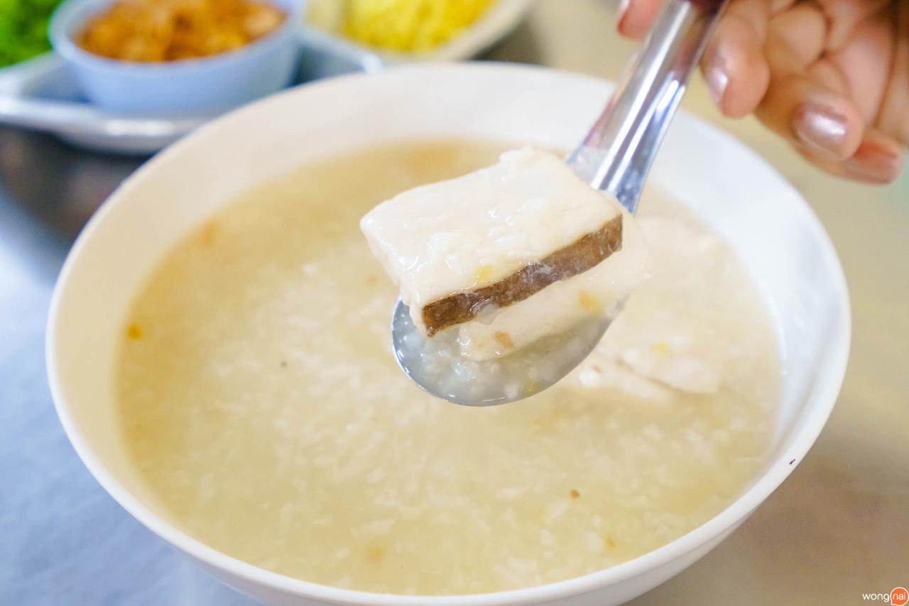มาทั้งทีต้องห้ามพลาด ก็คือ “ข้าวต้มปลา” (ราคา 60 บาท) ข้าวต้มปลาเนื้อนวลขาวเนียน มาพร้อมกับเนื้อปลาสำลีชิ้นหนาเนื้อแน่น รสชาติกลมกล่อมลงตัว เสิร์ฟมาพร้อมกับถาดหลุม ที่มีเครื่องปรุงให้เลือกใส่ได้ตามใจชอบ ทั้งผักชี, กระเทียมเจียว, ขิงซอย เด็ดจริงๆ ค่ะ