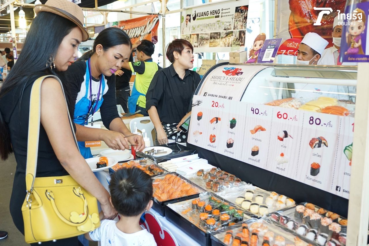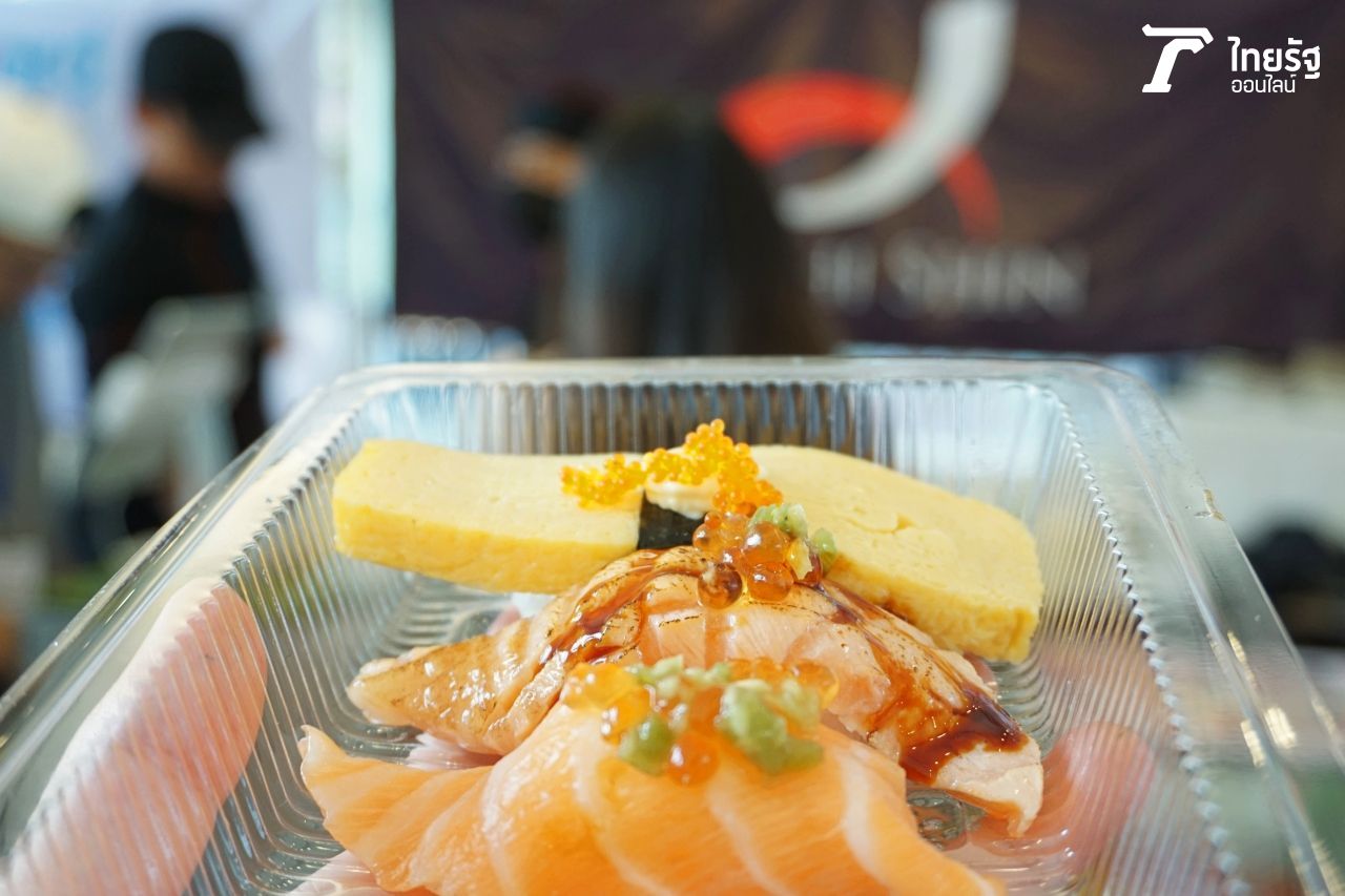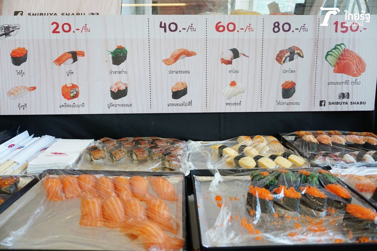 จริงๆ แล้วร้านนี้เป็นร้านอาหารญี่ปุ่นแนวชาบูหม้อไฟ แต่ก็มีเมนูจำพวกซูชิให้บริการด้วย พอมาออกร้านในงาน Bangkok Food Festival 2019 ทางร้านก็นำเอาเมนูเด็ดอย่างซูชิหน้าต่างๆ มาให้นักชิมได้ลองลิ้มกันหน่อย มีหลายราคาให้เลือกอร่อย เริ่มตั้งแต่คำละ 20 บาท, 40 บาท, 60 บาท และ 80 บาท แถมยังมีข้าวหน้าปลาดิบต่างๆ ด้วยนะ