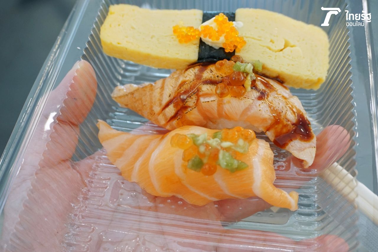 เป็นร้านอาหารญี่ปุ่นแนวซูชิข้าวปั้นและซาซิมิ ได้รางวัลร้านเด็ดแห่งปีมา 2 ปีซ้อน ร้านนี้เขาโดดเด่นในเรื่องซูชิหน้าปลาแซลมอน เราเลยจัดไป 1 ชุด 2 คำใหญ่ๆ ราคา 79 บาท แต่กลัวไม่อิ่มเลยสั่งหน้าไข่หวานอีก 1 คำ ราคา 30 บาท