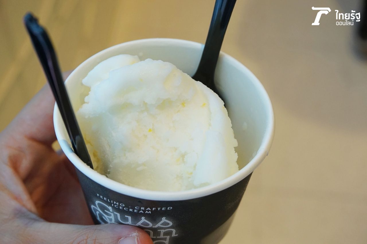 ส่วนร้านนี้เป็นร้านไอศกรีมโฮมเมด ในสไตล์คราฟต์ คือ ทำมือแทบทั้งหมด เช่น น้ำผึ้งที่ใช้ ก็มาจากฟาร์มที่เลี้ยงผึ้งด้วยดอกลำไยจริงๆ, บราวน์นี่ทำเอง, คาราเมลกวนเอง, นมทั้งหมดที่ใช้เป็นนมจากฟาร์ม, ครีมนำเข้ามาจากฝรั่งเศส, ไม่ใส่นมผง และไม่เน้นใส่กลิ่นใส่สี เป็นไอศกรีมที่ไม่มีท็อปปิ้ง มีให้เลือกหลากหลายรสชาติ เราลองชิมรสส้ม Yusu 1 สกู๊ป ราคา 85 บาท