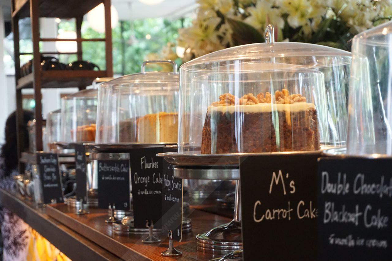 บรรยากาศรอบๆ ร้านก็ร่มรื่นดีมาก มีโต๊ะให้นั่งทั้งด้านในห้องกระจกติดแอร์ และด้านนอกแบบโอเพ่นแอร์ เลือกได้ตามใจชอบ เมนูหลักๆ ก็จะเป็นพวกอาหารจานด่วนแบบดั้งเดิม เช่นพิซซ่า เบอร์เกอร์ สลัด รวมไปถึงของหวานอย่างเค้กและไอศกรีมนานาชนิด
