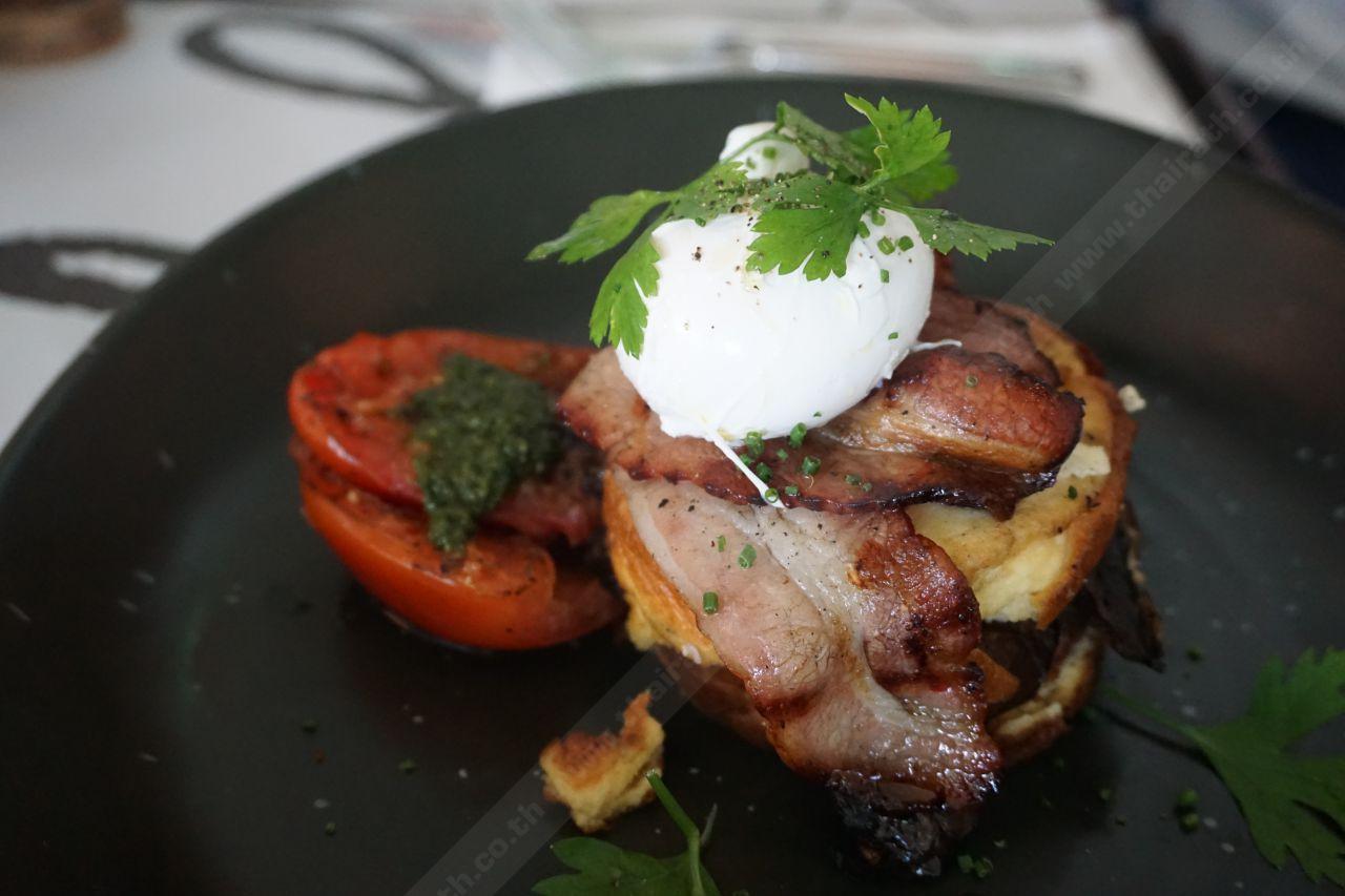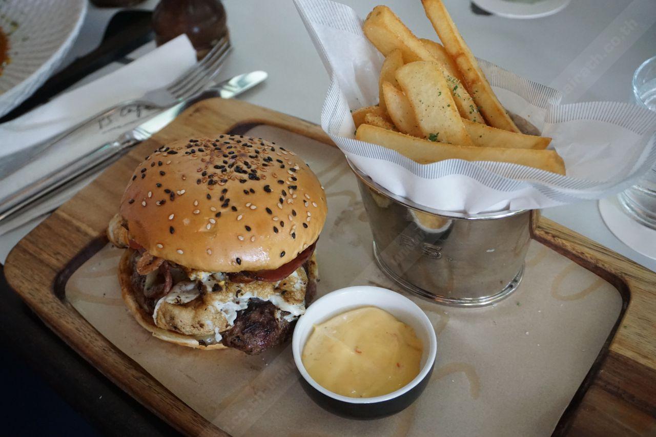 จานนี้เหมาะสำหรับ bacon Lover เพราะเขาจัดเบคอนมาแบบชิ้นใหญ่ๆ ทอดจนสุกกรอบเกรียมหอมอบอวลไปทั้งโต๊ะ แป้งเบอร์เกอร์อร่อยนุ่ม ไม่กระด้าง ไข่ทอดน้ำก็สุกกำลังดี ลงตัวอีกเหมือนกัน