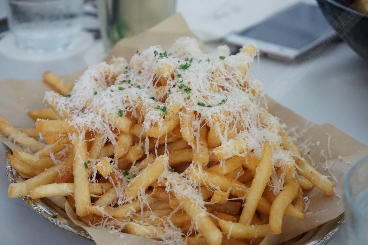 จานนี้ก็อร่อยอีกแล้ว มันคือความลงตัวระหว่างมันฝรั่งทอดและพาเมซานชีส จิ้มกับซอสมะเขือเทศและมายองเนส ยิ่งอร่อยมากไปอีก คอนเฟิร์ม
