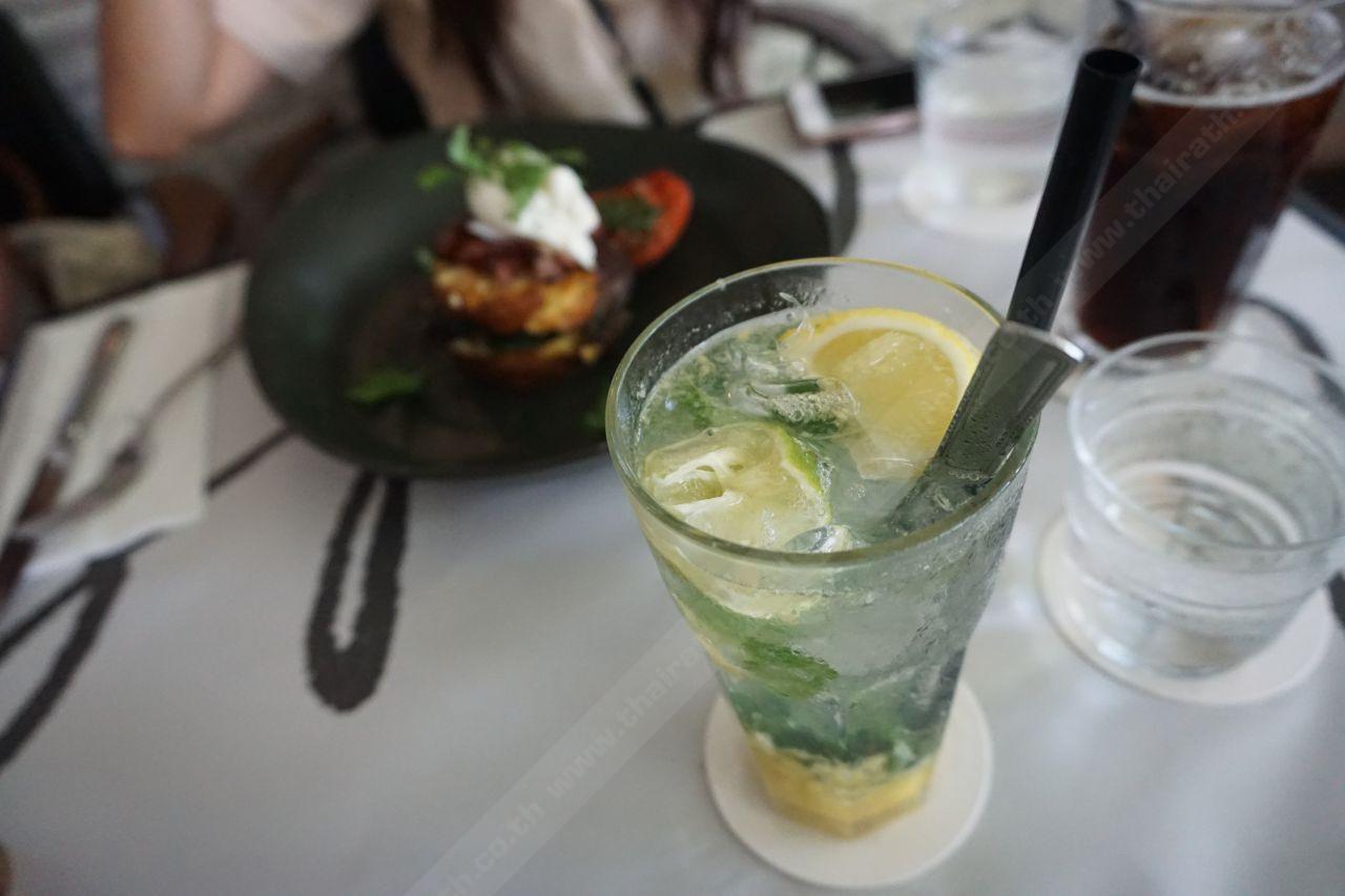 ผิดท้ายที่เครื่องดื่มเพื่อสุขภาพอย่าง Infused water ยอมรับแบบไม่อายว่าตอนแรกเราไม่รู้ว่ามันคือ Infused water คิดว่าเป็นน้ำมะนาวหวานๆ เปรี้ยวๆ พร้อมเนื้อมะม่วงหอมเย็นชื่นใจ แต่พอจิบเข้าไปคำแรกเท่านั้น อ้าว จืดสนิท (ฮา...) แต่ก็ไม่ได้แย่นะ รสชาติพอใช้ได้ หอมใบมิ้นท์ มีเนื้อมะม่วงให้เคี้ยวเพลินๆ ด้วย ก็ถือผ่าน! ใครชอบอาหารสไตล์นี้ เข้าไปดูรายละเอียดของทางร้านเพิ่มเติมได้ที่ : Pscafe