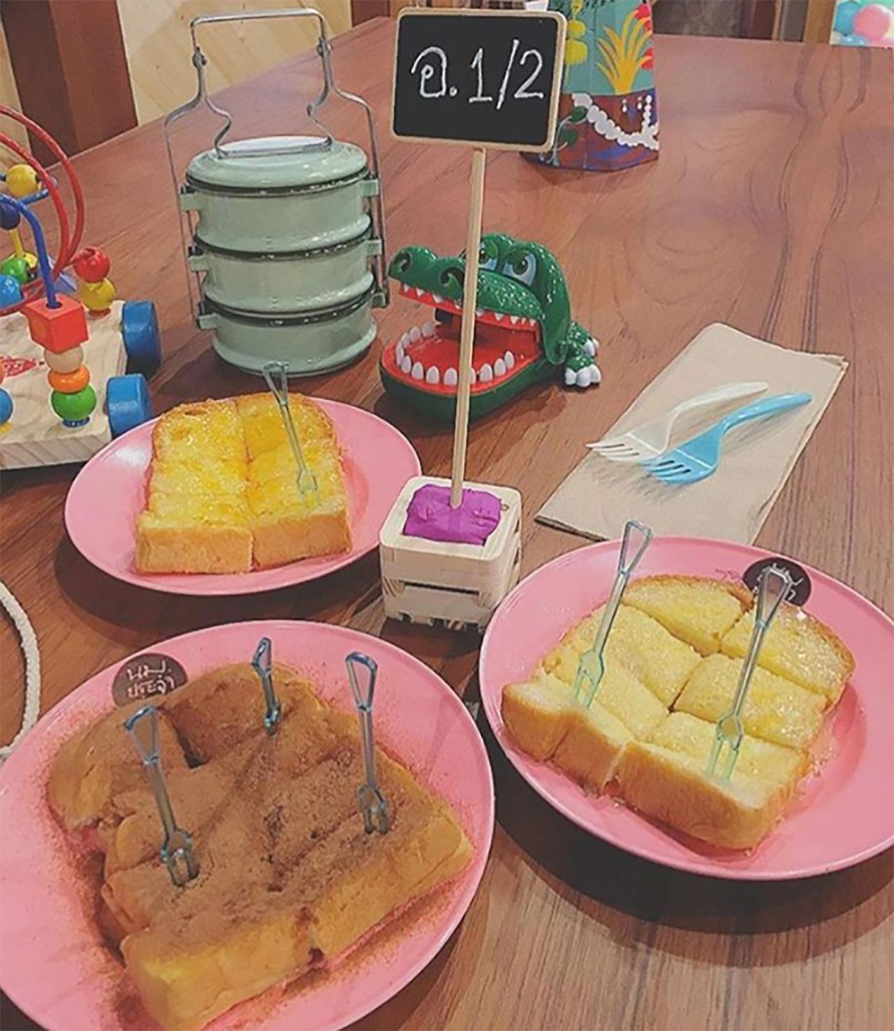 นอกจากนี้ เจ้าของร้านสุดน่ารักก็ค่อยๆ ปล่อยเมนูเด็ดออกมาทีละเมนู ทำเอาแทบท้องแตกตายกันเลยล่ะ! โดยเฉพาะ ปังภูเขาไฟชายล้วน ที่หอมไปด้วยผงช็อกโกแลตมากๆ, ปังปิ้งชาไทย หวานนุ่มลิ้นกลมกล่อมสุดๆ ตามด้วยนมสดเย็น, นมสดปั่นดีสุดๆ ไปเลย พูดแล้วอาจจะยังไม่เห็นภาพ ไปดูกันเลยดีกว่าว่ามันเริดขนาดไหนกันเนี่ยยย!