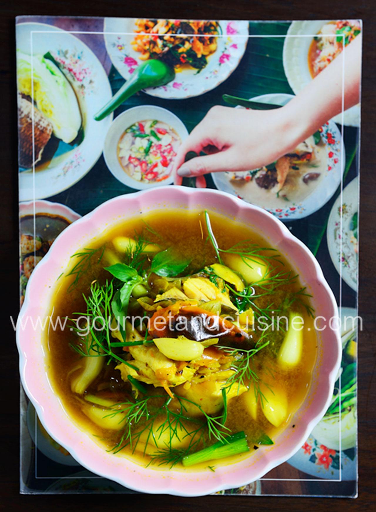 อาหารไทยต้องมาเป็นสำรับ เชฟหน่อยเลือกจานเด่นๆ มาให้เราชิมแทบจะในคราวเดียว ยำใบบัวบก เชฟหน่อยบอกว่าได้สูตรมาจากทางเกาะสมุย ใส่กะทิ มะนาว พริกสด ตะไคร้ มะพร้าวคั่ว และกุ้งป่น แกงปลาใส่ขนุนอ่อน แกงด้วยปลาอินทรีกับเครื่องเทศสมุนไพร โดยเฉพาะผักชีลาว รสค่อนข้างเผ็ดร้อน และได้ความมันของขนุนอ่อน