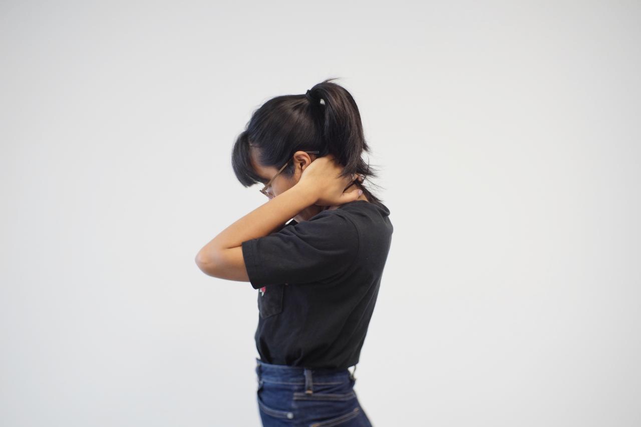 สำหรับคนที่นั่งทำงานจนปวดคอ ขอแนะนำให้ทำท่านี้เลย เริ่มจากยืนหลังตรง เอามือทั้ง 2 ข้างจับไว้ที่ต้นคอแล้วก้มหน้าลงให้สุดพร้อมกับเอามือกดไว้ ค้างไว้ 15 วินาที แล้วคลายออก