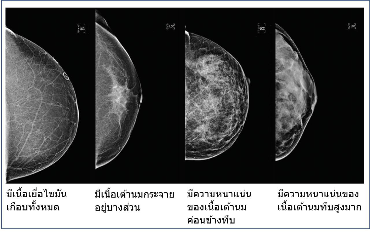 ความหนาแน่นของเนื้อเยื่อเต้านม ไม่สามารถระบุได้โดยการคลำตรวจ หรือโดยดูรูปร่างภายนอกของเต้านม แต่สามารถระบุได้จากการตรวจด้วยแมมโมแกรม แต่บางครั้ง...ผู้หญิงที่มีเนื้อเต้านมที่มีความหนาแน่นสูง จะทำให้ความไวในการตรวจแมมโมแกรมลดลง