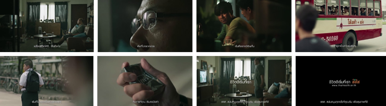โดยหนังเล่าผ่าน พฤติกรรมเชิงลึก ของคนไทยในพฤติกรรมของการเสพสื่อ ซึ่งพาไปเจอหลากหลายเหตุการณ์ ที่คนกำลังเห็นสื่อโฆษณา สสส. ทั้งตอนนั่งดูโทรทัศน์ในบ้านพร้อมกับการนั่งกินบนโซฟาโดยในโทรทัศน์กำลังดูโฆษณาแกว่งแขนลดพุง หรือดูตอนที่อยู่ในร้านอาหารขณะดื่มเหล้าแล้วเห็นโฆษณา จน เครียด กินเหล้า หรือตอนนั่งชิลสูบบุหรี่ ดูมือถือในช่วงเบรกตอนบ่ายก็ดู viral clip Smoking Kids ไปด้วย ซึ่งหนังหรือสื่อ สสส. ที่แต่ละคนในเรื่องเห็น จะสะท้อนประเด็นที่ สสส. รณรงค์ ตรงกับ Insight ความเสี่ยงด้านสุขภาวะของคนเหล่านั้นซึ่งถือว่าเป็นตัวแทนของคนไทย เพื่อกระตุกให้คนที่ดูได้คิดว่าคุณควรลุกขึ้นมาเปลี่ยนแปลงตัวเองได้รึยัง