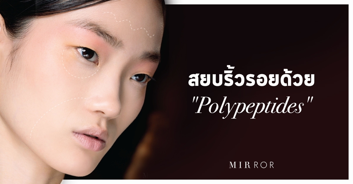 "ริ้วรอย" เมื่อพูดถึงคำนี้คงไม่มีใครอยากมีแน่ๆ แต่มันก็เป็นสิ่งที่เราทุกคนหลีกเลี่ยงไม่ได้ ด้วยความเครียด แสงแดด มลภาวะจากสิ่งแวดล้อมหรือแม้แต่วัยที่เพิ่มขึ้นทุกวันก็ตาม ถึงแม้จะหนีมันไม่พ้น แต่เราก็สามารถหาตัวช่วยเพื่อมาชะลอการเกิดริ้วรอยให้ช้าลง หรือบรรเทาให้ริ้วรอยที่เกิดขึ้นแล้วดูจางลงได้ และเช่นเคย MIRROR มีทางออกสำหรับทุกปัญหาให้คุณเสมอ ลองมาทำความรู้จักกับ "โพลีเปปไทด์" ส่วนผสมในสกินแคร์ที่ช่วยลบเลือนริ้วรอยที่ถูกพูดถึงมากที่สุดตัวหนึ่งในช่วงปีที่ผ่านมา (How to: แก้ปัญหา "รูขุมขนกว้าง" ง่ายๆ แต่ได้ผล!)