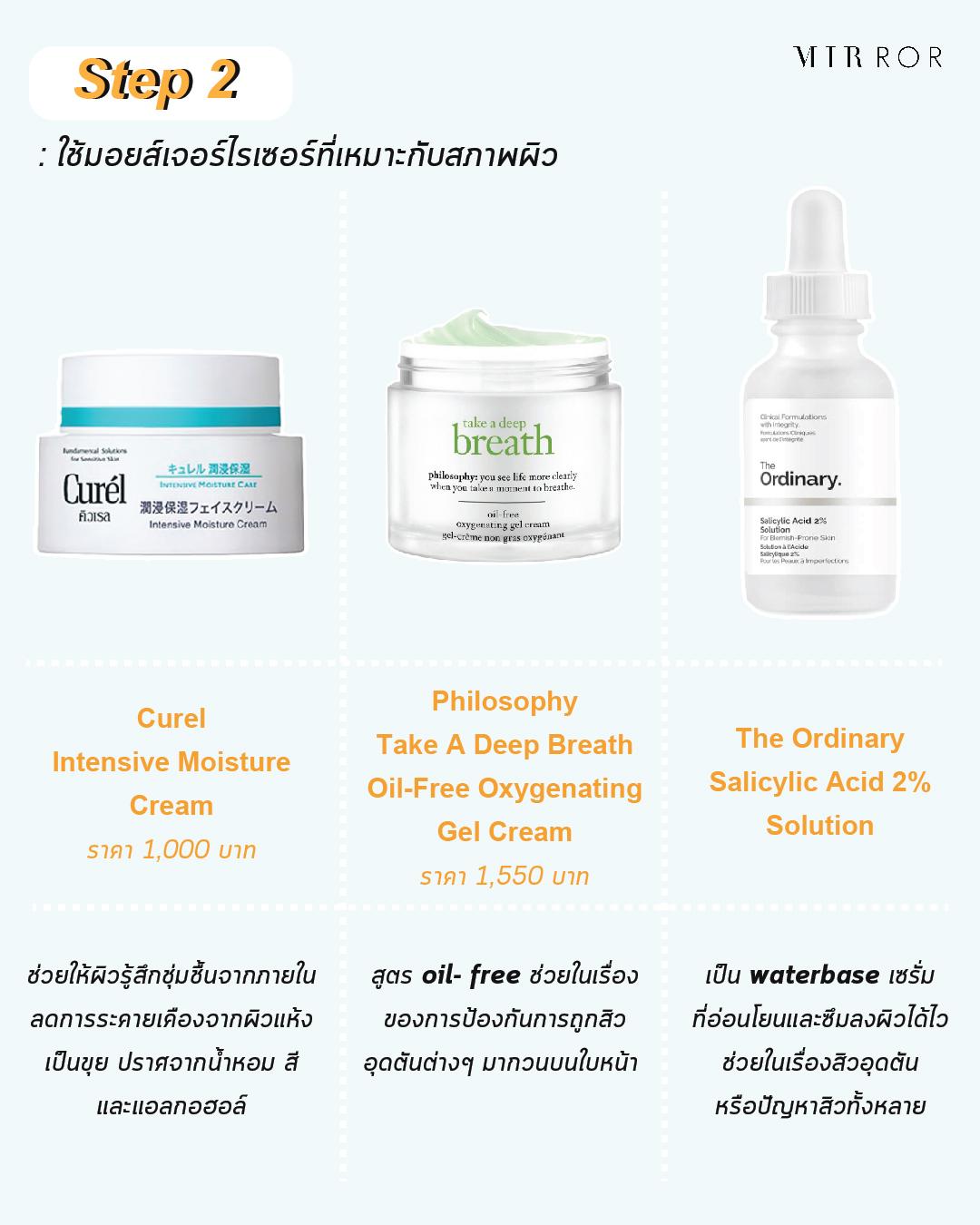 Step 2 : เลือกใช้มอยส์เจอร์ไรเซอร์ที่เหมาะกับสภาพผิว