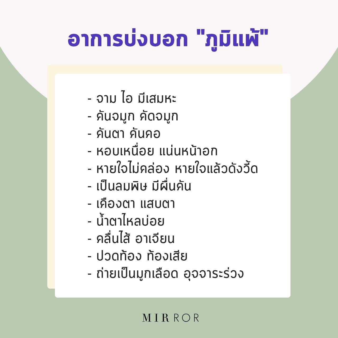 เป็นอย่างไรบ้าง? กับอาการของ "ภูมิแพ้-ไข้หวัด-โควิด-19" อาการแบบไหนคือใช่! เราจะสังเกตได้ว่า...อาการของ 3 โรคที่กล่าวมาข้างต้น อาจจะมีอาการที่เหมือนกันเสียเหลือเกิน แต่ทั้งนี้สาวๆ ไม่ต้องกังวลไปนะคะ MIRROR แนะนำให้เราต้องดูอาการอื่นๆ ควบคู่กันไปด้วย ถ้าหลายวันผ่านไปแล้วเห็นท่าไม่ดี อาการหนักขึ้น แนะนำให้สาวๆ รีบไปพบแพทย์ทันที เพื่อรักษาตัวเองและเพื่อความสบายของเราและคนในครอบครัวด้วยนะคะ หากใครอยากรู้เรื่องของภูมิแพ้ แนะนำให้อ่าน รู้จักอาการ "ภูมิแพ้" ที่ไม่ใช่ "โควิด-19" หรือติดตามอ่านบทความเกี่ยวกับ "สุขภาพ" ดีๆ ได้ที่นี่