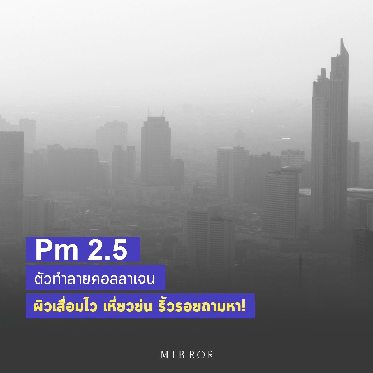 หากสัมผัสฝุ่น PM 2.5 เป็นเวลานาน ฝุ่น PM 2.5 จะไปกระตุ้นให้เกิดอนุมูลอิสระ รบกวนการทำงานของเซลล์ผิว ทำลายคอลลาเจน