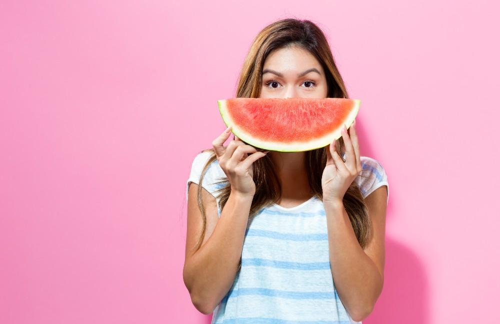 หลายคนอาจเข้าใจผิดคิดว่าแตงโมเป็นผลไม้ที่ทำให้อ้วน เนื่องจากมีรสหวานและฉ่ำน้ำ แต่จริงๆ แล้วแตงโมเป็นผลไม้ช่วยลดน้ำหนัก แถมทำให้กินแล้วรู้สึกอิ่มเร็ว มีใยอาหารสูง แคลอรีต่ำ เนื้อแตงโมอุดมไปด้วยแคลเซียม โพแทสเซียม เบตาแคโรทีน ซึ่งมีส่วนช่วยบำรุงร่างกาย และป้องกันภาวะไขมันอุดตันในเส้นเลือด
