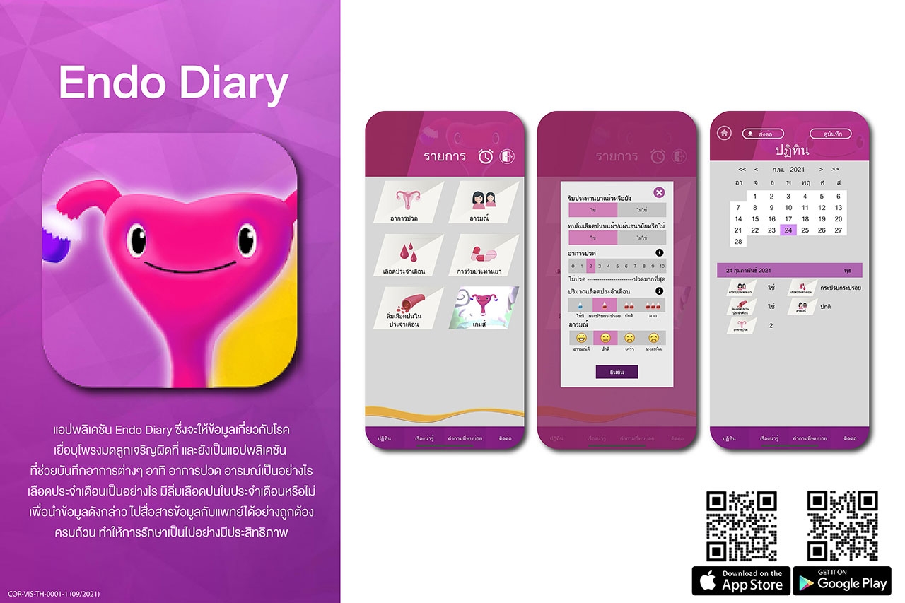 ทั้งนี้ ผู้ป่วยโรคเยื่อบุโพรงมดลูกเจริญผิดที่ สามารถดาวน์โหลด แอปพลิเคชัน Endo Diary TH ได้ทั้ง App Store และ Google Play ซึ่งสามารถช่วยเตือนการรับประทานยา ให้ข้อมูลเบื้องต้นเกี่ยวกับโรค ตลอดจนช่วยบันทึกอาการสำคัญต่างๆ อาทิ อาการปวด อารมณ์เป็นอย่างไร เลือดประจำเดือนเป็นอย่างไร มีลิ่มเลือดปนในประจำเดือนหรือไม่ เพื่อนำข้อมูลดังกล่าวไปสื่อสารกับแพทย์ได้อย่างถูกต้องครบถ้วน ทำให้การรักษาเป็นไปอย่างมีประสิทธิภาพ.