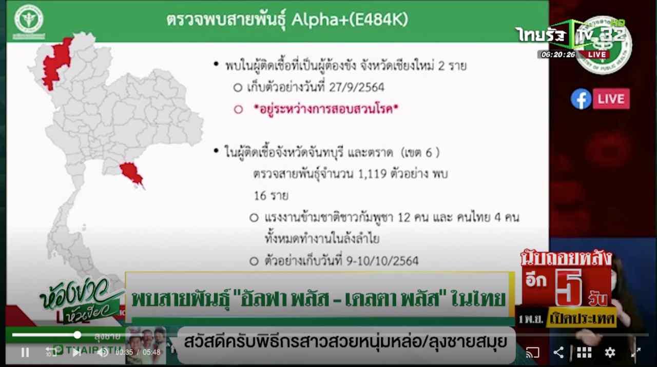 ข้อมูลจากกรมควบคุมโลกเผยผู้ป่วยโควิดสายพันธุ์อัลฟาพลัส ทั้งหมด 18 ราย เป็นผู้ต้องขัง จ.เชียงใหม่ 2 ราย และที่เหลือเป็นคนไทย กับแรงงานต่างชาติ ในล้งลำไย ใน จ.จันทบุรี และ จ.ตราด