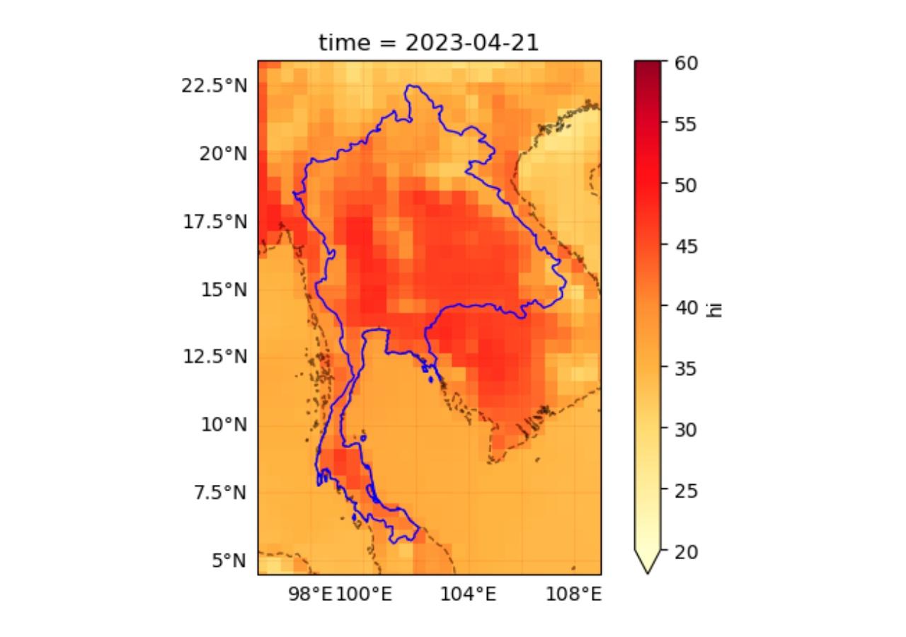 - คาดการณ์ว่าอนาคต ค่าดัชนีความร้อนในช่วงฤดูร้อนจะอยู่ระหว่าง 41-54 องศาเซลเซียส ซึ่งอยู่ในระดับอันตราย และอันตรายมาก ส่งผลต่อสุขภาพร่างกาย