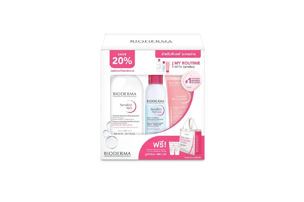 Bioderma ก็มีชุดของขวัญสุดพิเศษให้ได้เลือกช็อป ประกอบไปด้วยผลิตภัณฑ์ทำความสะอาดผิวสำหรับผิวแพ้ง่าย ไม่ว่าจะเป็น Sensibio H2O คลีนซิ่งทำความสะอาดผิว ใช้สำหรับเช็ดเครื่องสำอางและกำจัดสิ่งสกปรกบนใบหน้า Sensibio H2O Eye Remover คลีนซิ่งทำความสะอาดรอบดวงตา เช็ดเครื่องสำอางออกได้ง่าย ไม่แสบตา และ Sensibio Gel Moussant เจลล้างหน้าสูตร Micellar ช่วยทำความสะอาดผิวอย่างอ่อนโยน