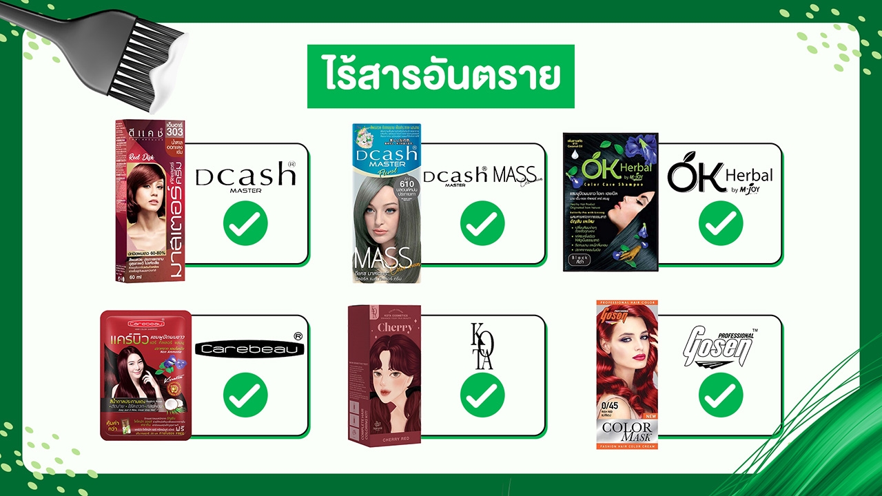 4. ไร้สารอันตราย : ยาย้อมผมที่ดีควรปราศจากสารอันตราย ที่จะทำลายหนังศีรษะ ทำให้ผมขาด แห้งเสียอย่าง สาร PPD และ แอมโมเนีย