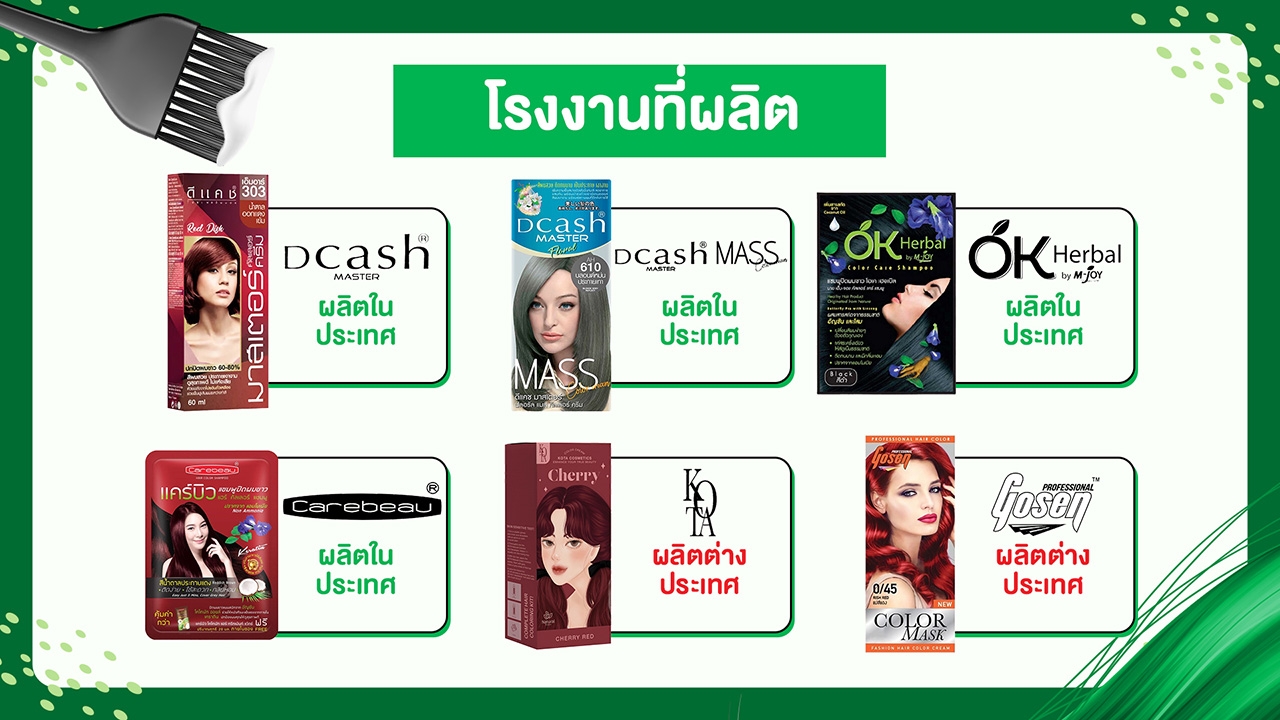 ผลิตสินค้าที่ผ่านการจดทะเบียนผลิตภัณฑ์กับองค์การอาหารและยา ( อย.) เชื่อมั่นในเรื่องคุณภาพสินค้า และมั่นใจในเรื่องของข้อมูลผลิตภัณฑ์ และสามารถตรวจสอบข้อมูลเกี่ยวกับผลิตภัณฑ์ได้ (เว็บไซต์ อย.) อย่าง Dcash Master, Mass, OK Shampoo จะผลิตที่โรงงานเดียวกัน ซึ่งเป็นโรงงานเดียวกับ schwarzkopf, LYO ของ พี่หนุ่ม กรรชัย และอีกมากมาย