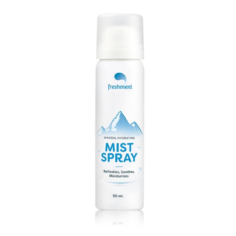 สเปรย์น้ำแร่จาก Freshment สเปรย์น้ำแร่จากธารน้ำแข็งบริสุทธิ์ ผสานกับไฮโดรแบงค์ (Hydrobank) สารกักเก็บความชุ่มชื้น 7 ชนิด ช่วยให้ผิวชุ่มชื้นยาวนาน ช่วยเสริมเกราะป้องกันผิวให้แข็งแรง และกระชับผิวให้ดูเรียบเนียน ละอองสเปรย์เล็กละเอียด ใช้ฉีดหลังแต่งหน้าก็ไม่ทำให้เครื่องสำอางเป็นคราบ