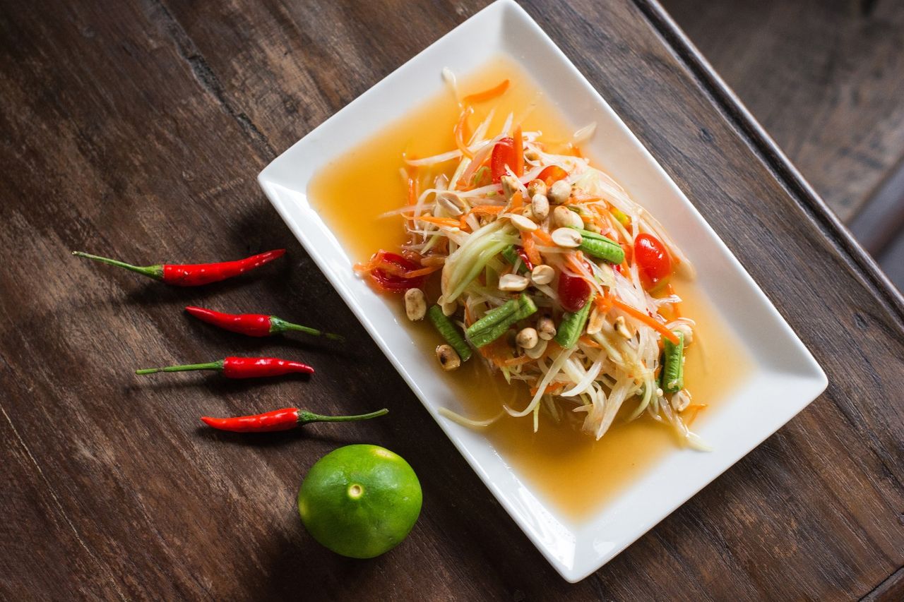 เมนูโปรดของคนไทยก็สามารถปรับเป็นอาหารสุขภาพได้ง่ายๆ เพียงแค่ไม่ใส่น้ำตาลหรือผงชูรสลงไป ปรุงรสด้วยน้ำปลาในปริมาณที่พอดีๆ ใช้มะนาวสดเพิ่มความเปรี้ยว คลุกเคล้าให้เข้ากับเส้นมะละกอ มะเขือเทศ ถั่วฝักยาว พริก กระเทียม และถั่วลิสง หลีกเลี่ยงการใส่เครื่องปรุงรสที่แต่งกลิ่นเลียนแบบธรรมชาติ แค่นี้ก็สามารถลิ้มรสความอร่อยของเมนูส้มตำเพื่อสุขภาพได้แล้ว