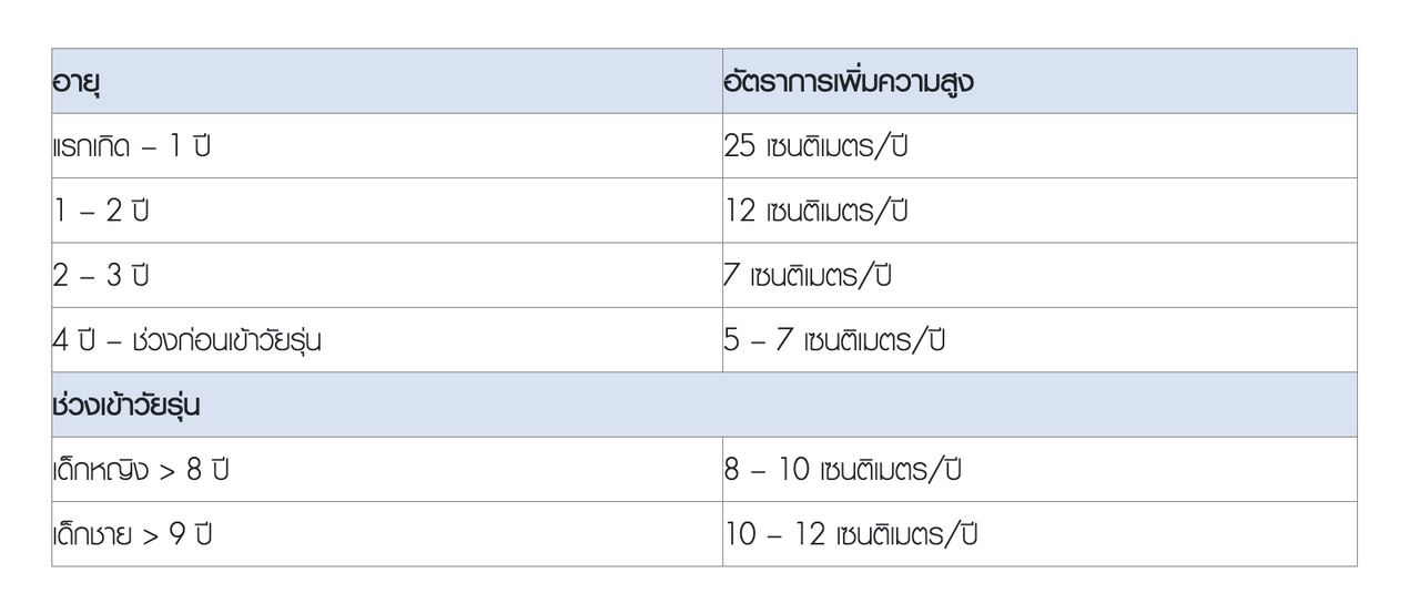 อัตราการเพิ่มความสูงของเด็กชายและเด็กหญิงในแต่ละวัย