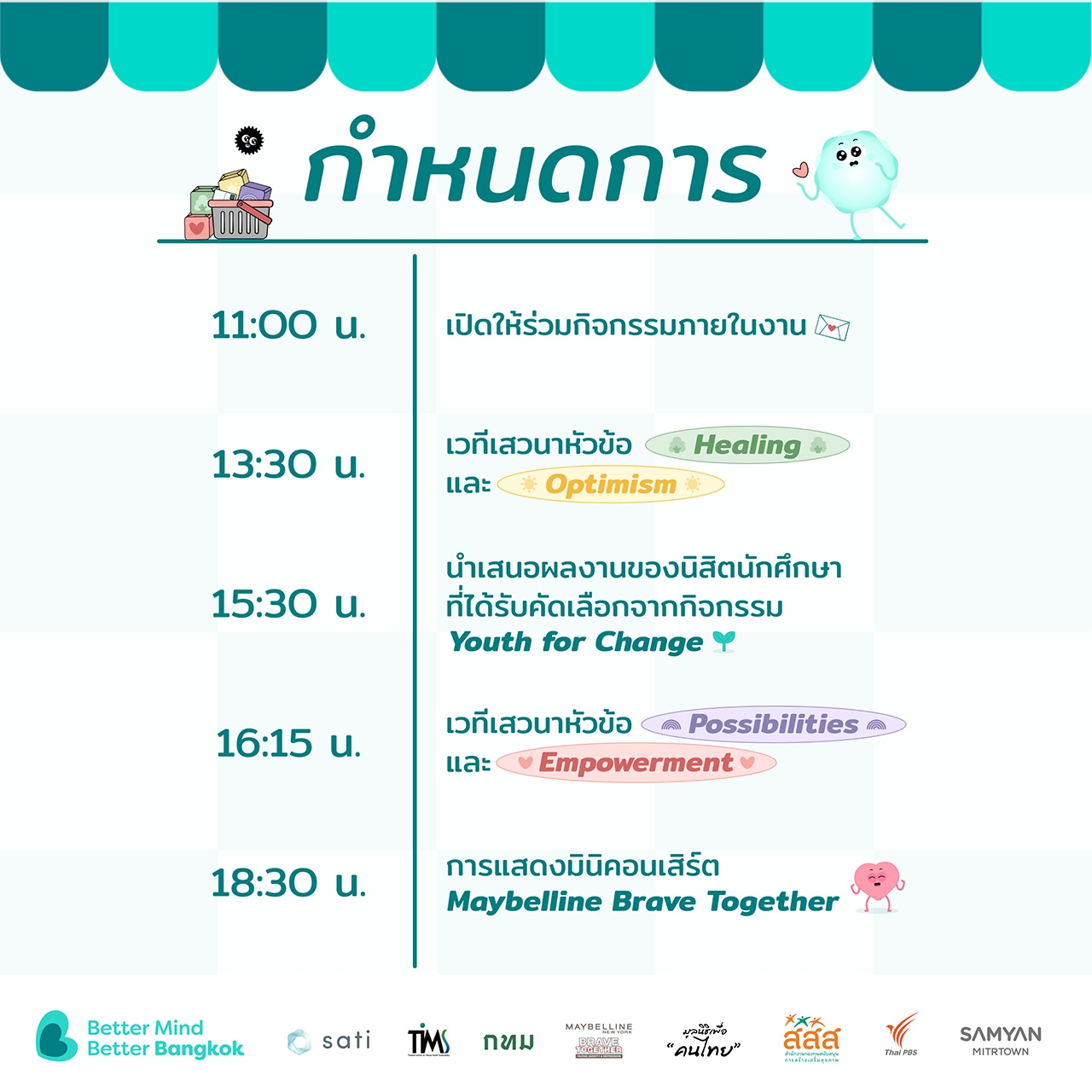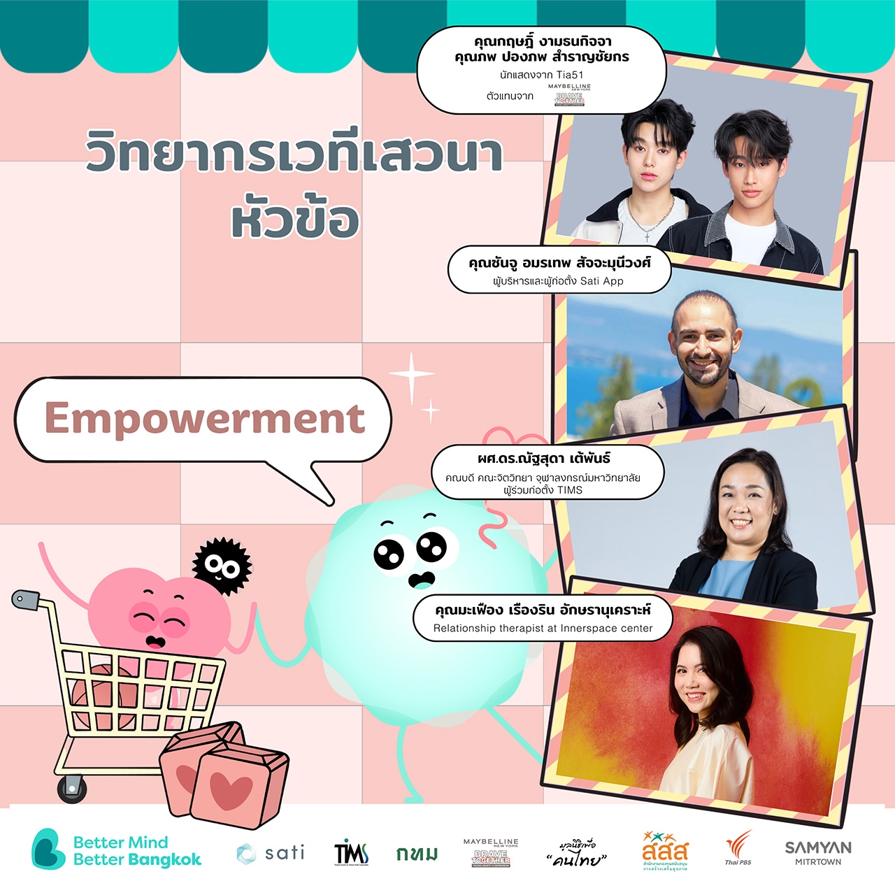การเสวนา “Better Mind Better Bangkok 2025” “สติ แอพ” ได้ร่วมมือกับสถาบันวิชาการเพื่อความยั่งยืนทางสุขภาพจิต (TIMS) กรุงเทพมหานคร เมย์เบลลีน นิวยอร์ก (Maybelline Brave Together) มูลนิธิเพื่อคนไทย สำนักงานกองทุนสนับสนุนการสร้างเสริมสุขภาพ (สสส.) ไทยพีบีเอส (ThaiPBS) และสามย่านมิตรทาวน์ จัดขึ้นภายใต้ธีม “HOPE – ความหวัง” สัญลักษณ์แห่งพลังใจที่ย้ำเตือนว่า แม้ในวันที่เราต้องเผชิญความท้าทาย การเติมพลังใจและความหวังใหม่ ๆ ก็เกิดขึ้นได้เสมอ