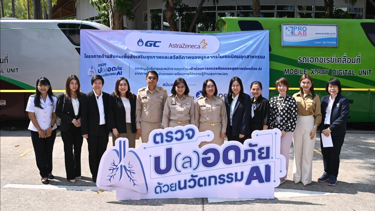 การนิคมอุตสาหกรรมแห่งประเทศไทย (กนอ.) ร่วมกับ บริษัท แอสตร้าเซนเนก้า (ประเทศไทย) จำกัด สานต่อโครงการด้านสังคมเพื่อส่งเสริมสุขภาพและสวัสดิภาพของบุคลากรในเขตนิคมอุตสาหกรรม ลงพื้นที่ตรวจเอ็กซ์เรย์ปอด ด้วย AI เพื่อคัดกรองความผิดปกติในระยะแรกเริ่ม พร้อมเดินหน้าจัดเสวนาให้ความรู้โดยแพทย์ผู้เชี่ยวชาญ และแชร์ประสบการณ์จริงจากนักแสดง เอ๋–พรทิพย์ สกิดใจ ยกระดับการดูแลสุขภาพปอดเชิงป้องกัน แก่พนักงาน บมจ.พีทีที โกลบอล เคมิคอล (GC) และ บมจ.ปูนซิเมนต์ไทย (เอสซีจี)