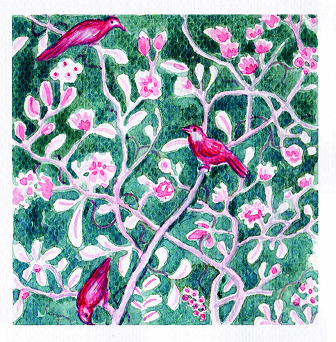 ลวดลายที่ผสมผสานระหว่างตะวันออก กับตะวันตก สีสันสวยงามบางสีมาจากงาน เครื่องเคลือบของจีน เช่น เขียวหยก แดง หรือดำเงา ลวดลายส่วนใหญ่เกิดจากภาพ ในจินตนาการ อาจเป็นภาพธรรมชาติ หรือเรื่องราวต่างๆ นิยมใช้ตั้งแต่ต้นยุค 80 หรือในช่วงของยุคนีโอคลาสสิก และโรโกโก มักใช้เป็นลวดลายของผ้าม่าน ผ้าบุ และวอลล์เปเปอร์