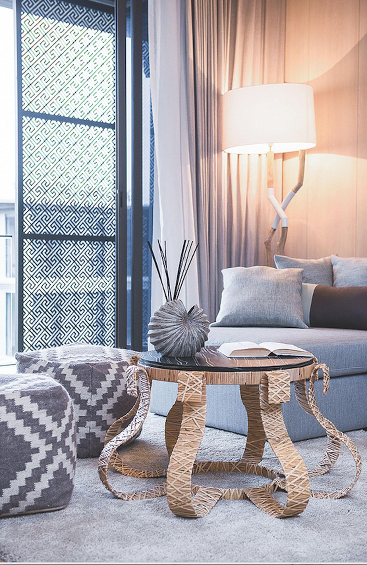 ลวดลายไม่จำเป็นต้องมาจากผ้าบุและวอลล์เปเปอร์เท่านั้น องค์ประกอบอื่นๆ เช่น เฟอร์นิเจอร์ที่มีรายละเอียดของวัสดุธรรมชาติ ส่วนของงานสถาปัตยกรรมอย่างระแนงตรงระเบียง หากออกแบบเป็นลวดลายสวยๆ เมื่อแสงแดดส่องเข้ามาก็ช่วยสร้างอารมณ์ให้ห้องดูอบอุ่นขึ้นได้