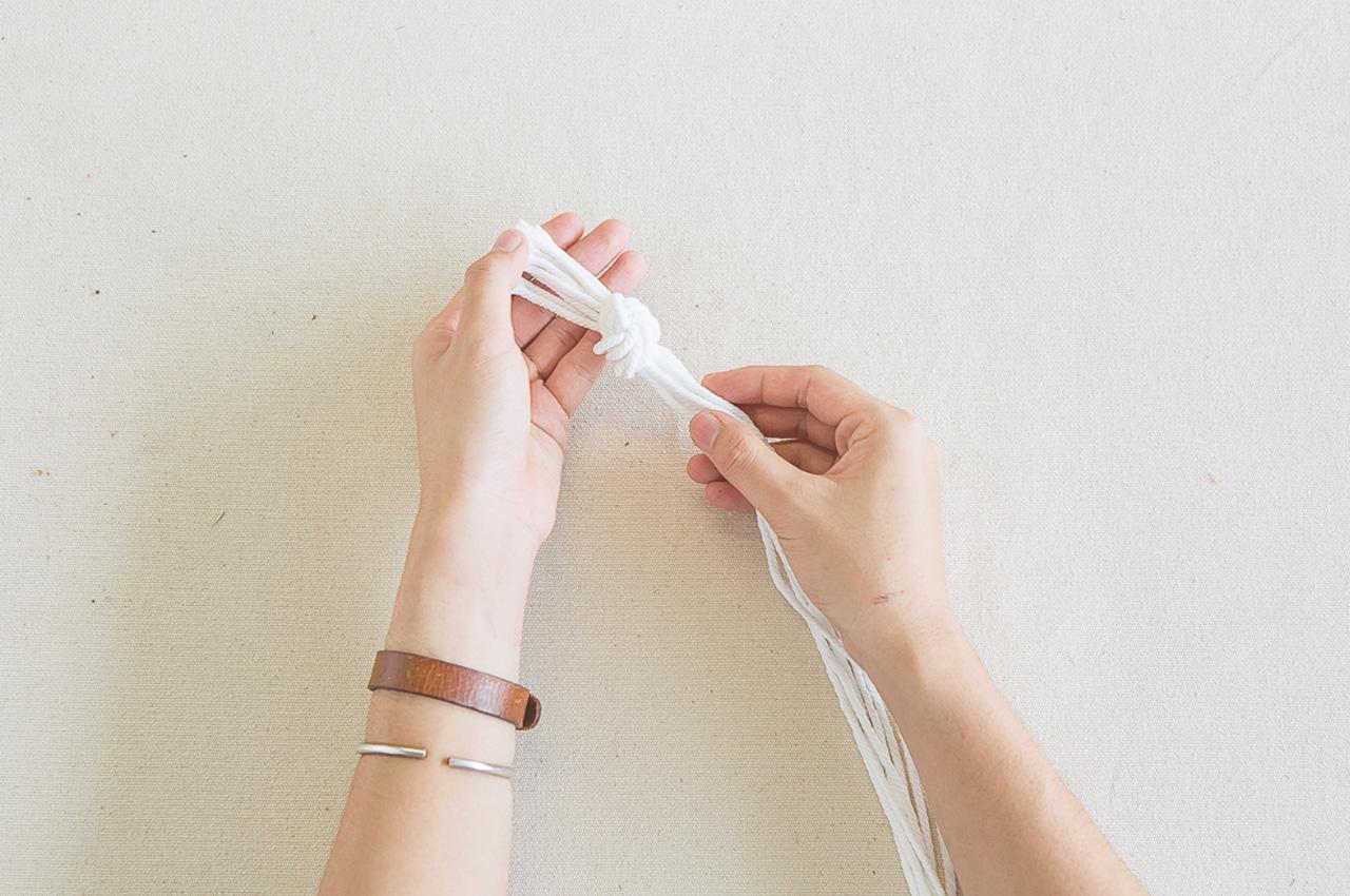 2. มัดเชือกที่ปลายด้านใดด้านหนึ่งรวมกันให้เป็นปม