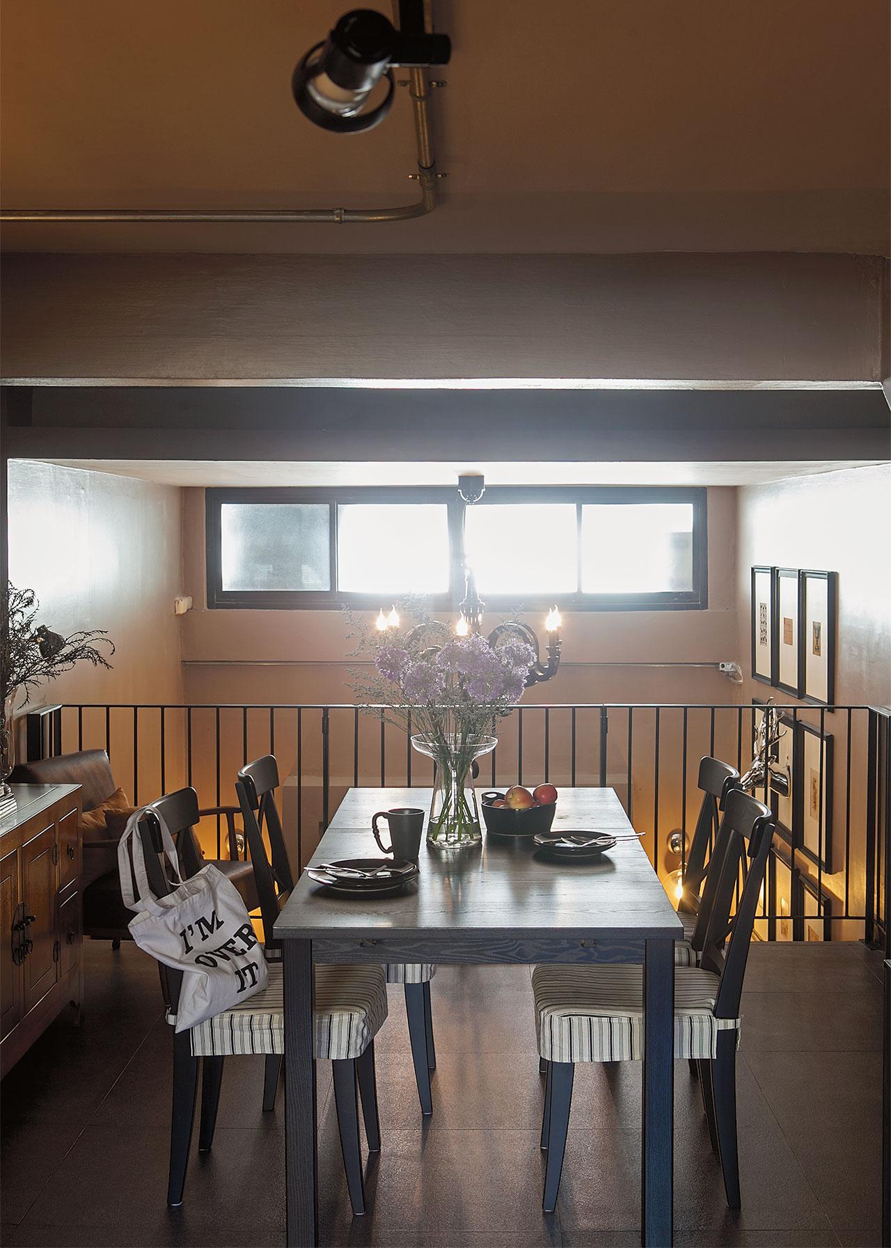 เมื่อขึ้นมายังชั้นลอยเราจะพบกับมุมรับประทานอาหาร เชื่อมต่อกับครัวแพนทรี่สไตล์ยุโรปด้วยเทคนิคการเรียงกระเบื้องคล้ายผนังก่ออิฐ ส่วนห้องนอนชั้น 2 คุณจ้าได้กั้นผนังระหว่างห้องนอนกับห้องน้ำ ทำให้ได้ห้องแต่งตัวเพิ่มขึ้นอีกห้อง