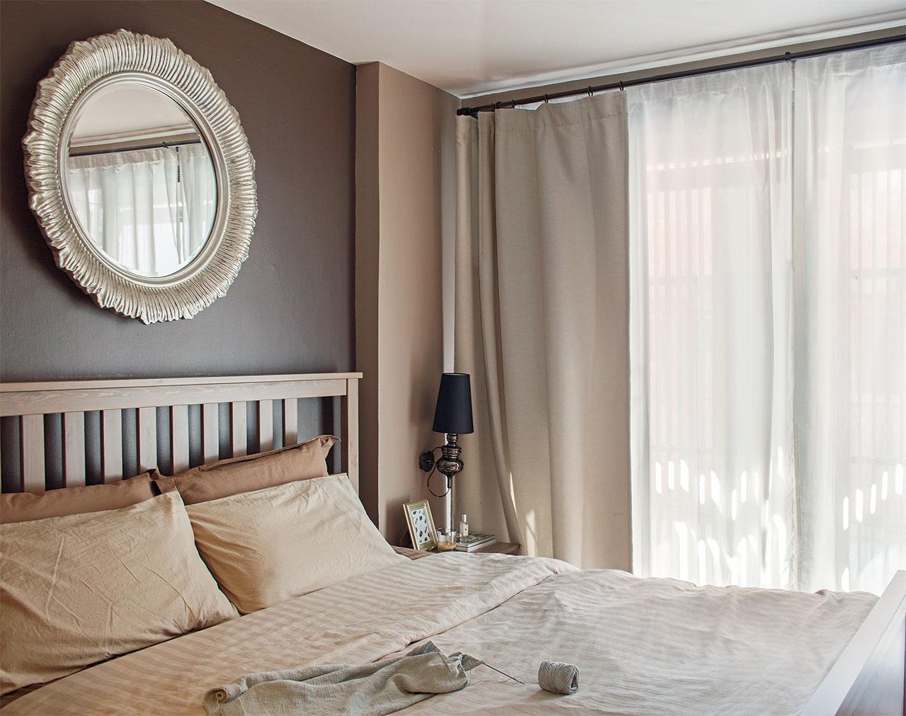 “คนชอบคิดว่าใช้สีเข้มแล้วทำให้บ้านแคบลง ความจริงมันไม่ใช่ โดยผมจะเน้นผนังบางด้านให้เข้มขึ้นเพื่อดึงสายตาให้ห้องดูลึกและมีมิติ ปกติผมเคยอยู่บ้านทาสีขาวธรรมดามาก่อนงานนี้ก็เลยขอใช้โทนไปทางยุโรปแบบมืดนิดวอร์มหน่อย สังเกตโทนสีเราจะไม่ใช่เทาดำ แต่เป็นเทาน้ำตาล แสงที่ใช้ก็เป็นแสงวอร์มไลต์ทั้งหมด ให้ความรู้สึกอบอุ่นน่าอยู่ ส่วนเคล็ดลับการเลือกของแต่งบ้าน เราผสมทั้งของถูกและแพงเข้าด้วยกันจนออกมาลงตัว”