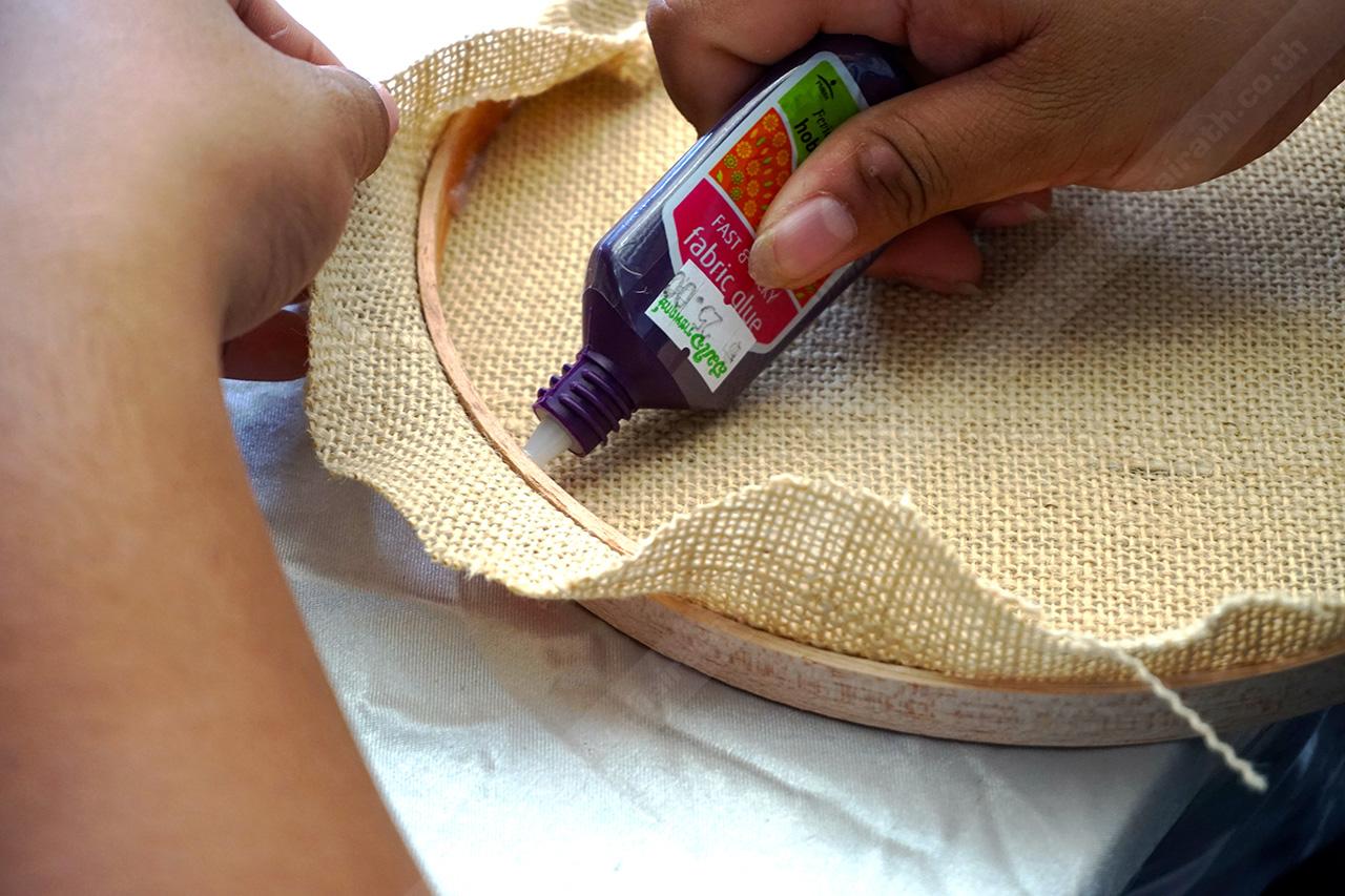 2. ติดผ้ากระสอบกับตัวสะดึง