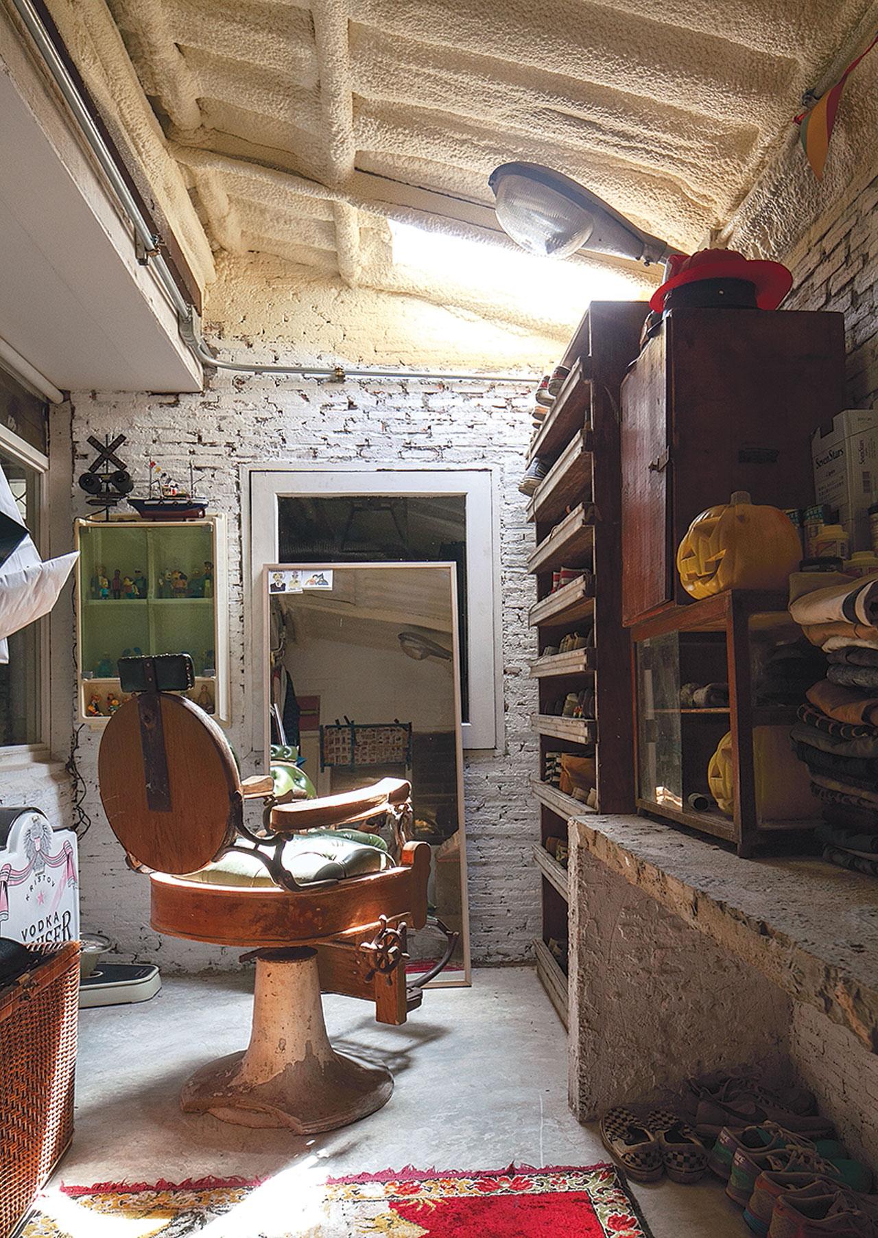 เราหลงรักสไตล์อเมริกันวินเทจของบ้านนี้ เพราะออกแบบห้องแต่งตัวขนาดใหญ่ วางเก้าอี้ตัดผมสไตล์วินเทจตัวสวย ออกแบบชั้นวางรองเท้าขนาดใหญ่เพื่อการจัดวางได้อย่างเป็นระเบียบ เก่าได้ แต่ต้องสะอาด และมีการจัดการที่ดี เท่านี้ก็ทำให้ห้องดูดิบเท่ไม่ซ้ำใคร